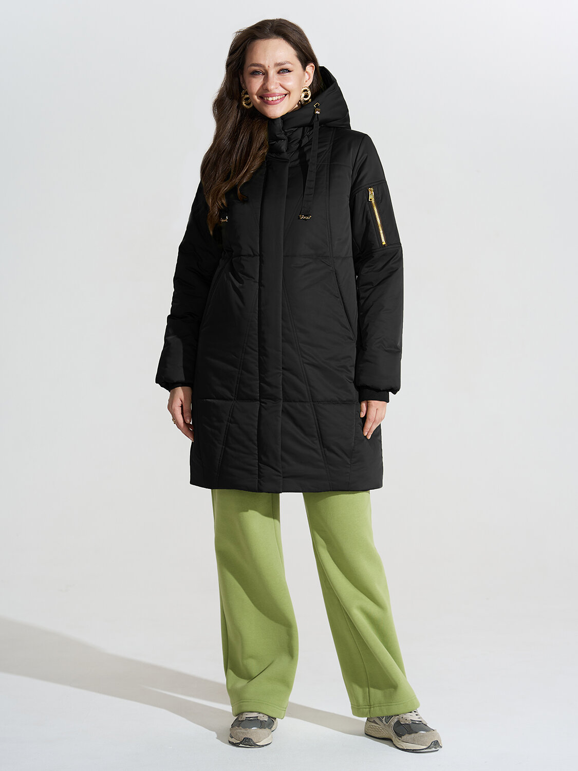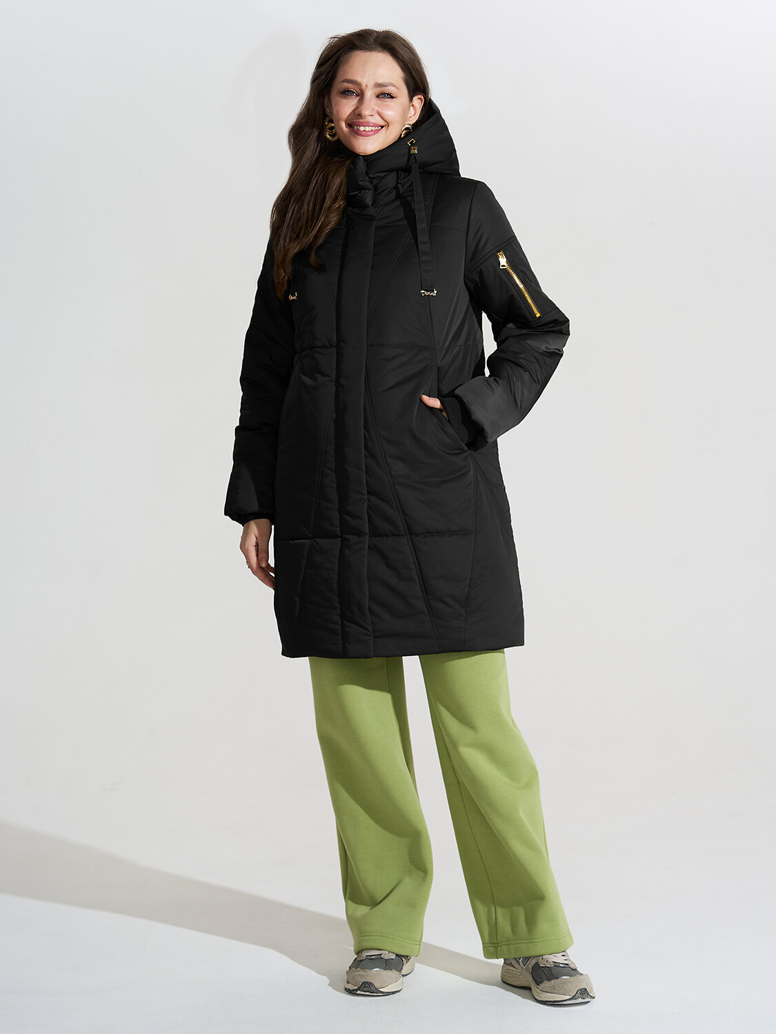 Укороченное зимнее женское пальто свободного силуэта. О-образный силуэт скрывает все недостатки фигуры. Разработанные нашими дизайнерами декоративные строчки, подчеркивает все достоинства этого силуэта. Верхняя часть спинки украшена декоративной тесьмой и нашим металлическим логотипом. Застежка на тракторную двух замковую молнию и кнопки. Карманы на полочке каплевидной формы, отделаны внутри декоративной отделочной тесьмой. Дополнительный карман на рукаве застегивается на молнию. Капюшон не отстегивается, затягивается на кулиску. Подкладка из вискозы с полиэстером обеспечивает комфорт и удобство при ношении. Внутренний карман. Рукава с трикотажными манжетами. Куртка выполнена из ткани с водоотталкивающей пропиткой, которая очень поможет в дождливую и ветренную погоду. Благодаря новейшему утеплителю ТермМакс изделие будет очень теплым и легким. Его сильные стороны : высокие показатели тепло - и воздуха проводимости, малый удельный вес, хорошая эластичность, гигиеничность, упругость, прочность, долговечность, формоустойчивость, легкая стирка и быстрая сушка. Мы используем только лучшие материалы и тщательно следим за каждым этапом производства. Все наши модели проходят тщательный контроль качества, чтобы удовлетворить самым высоким стандартам. В нашей верхней одежде вам всегда будет комфортно и очень тепло!