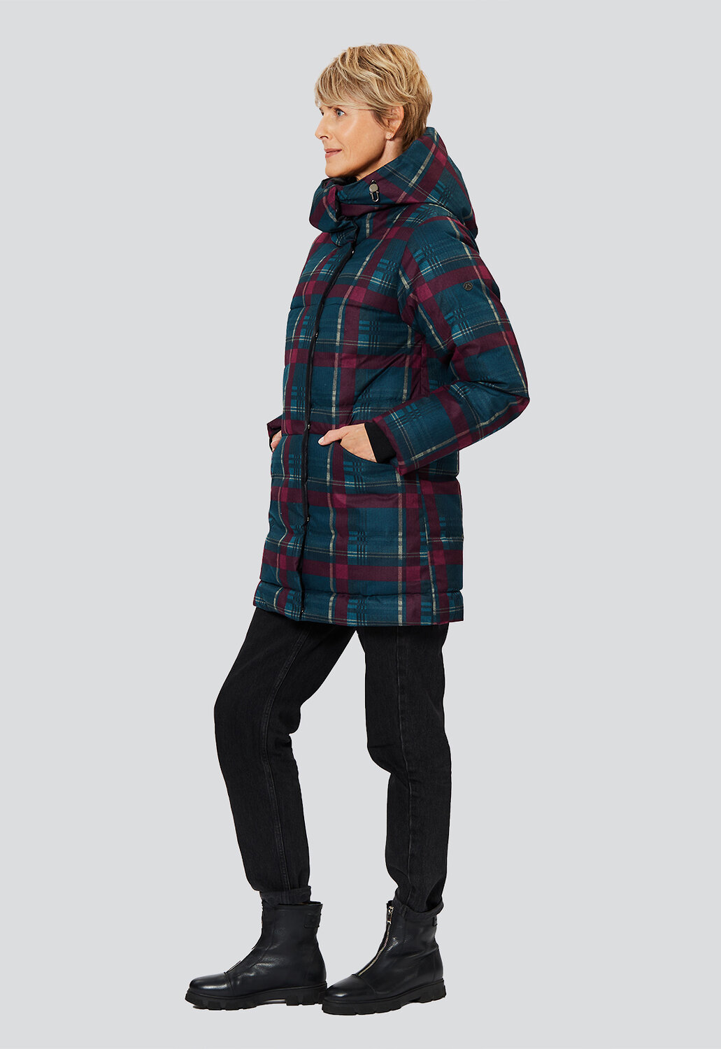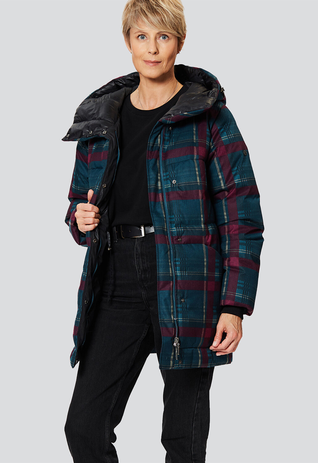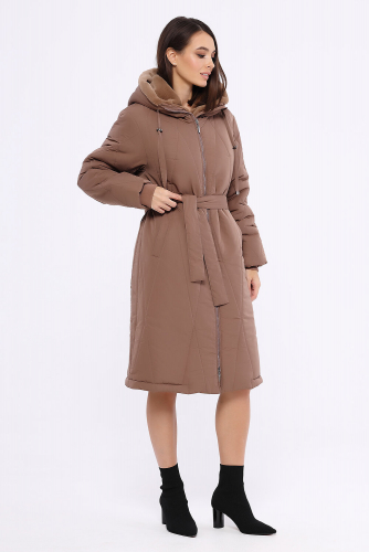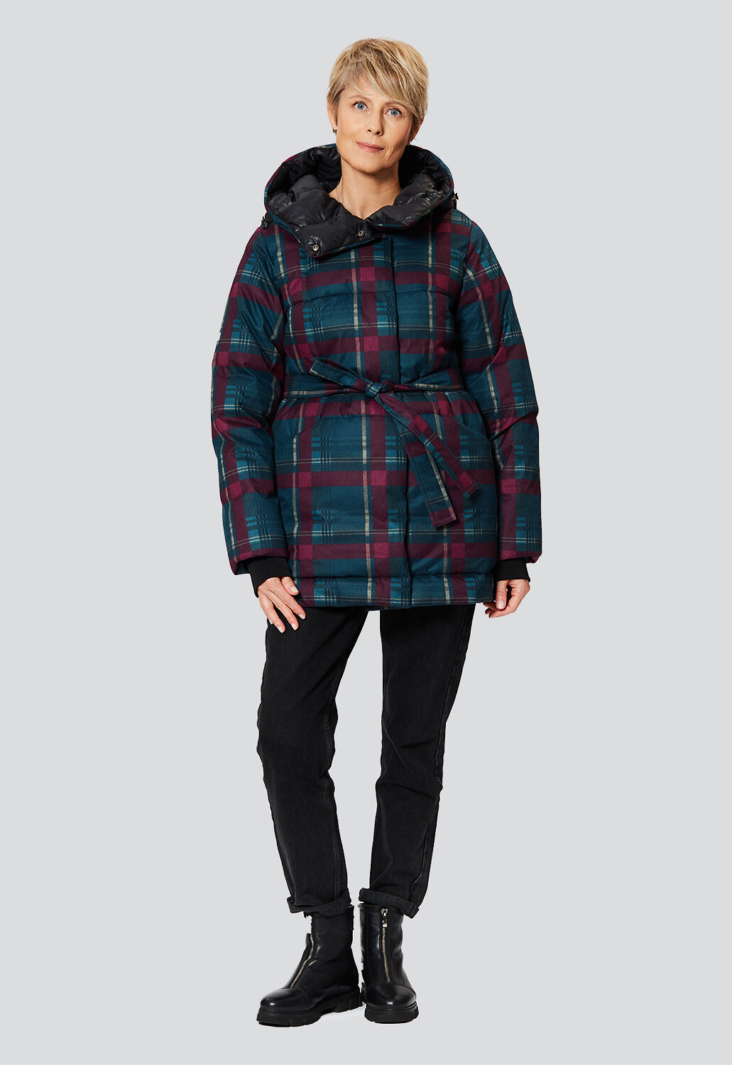 Капюшон и подборта отделаны такнью-компаньоном, в тон которой подобран подклад.