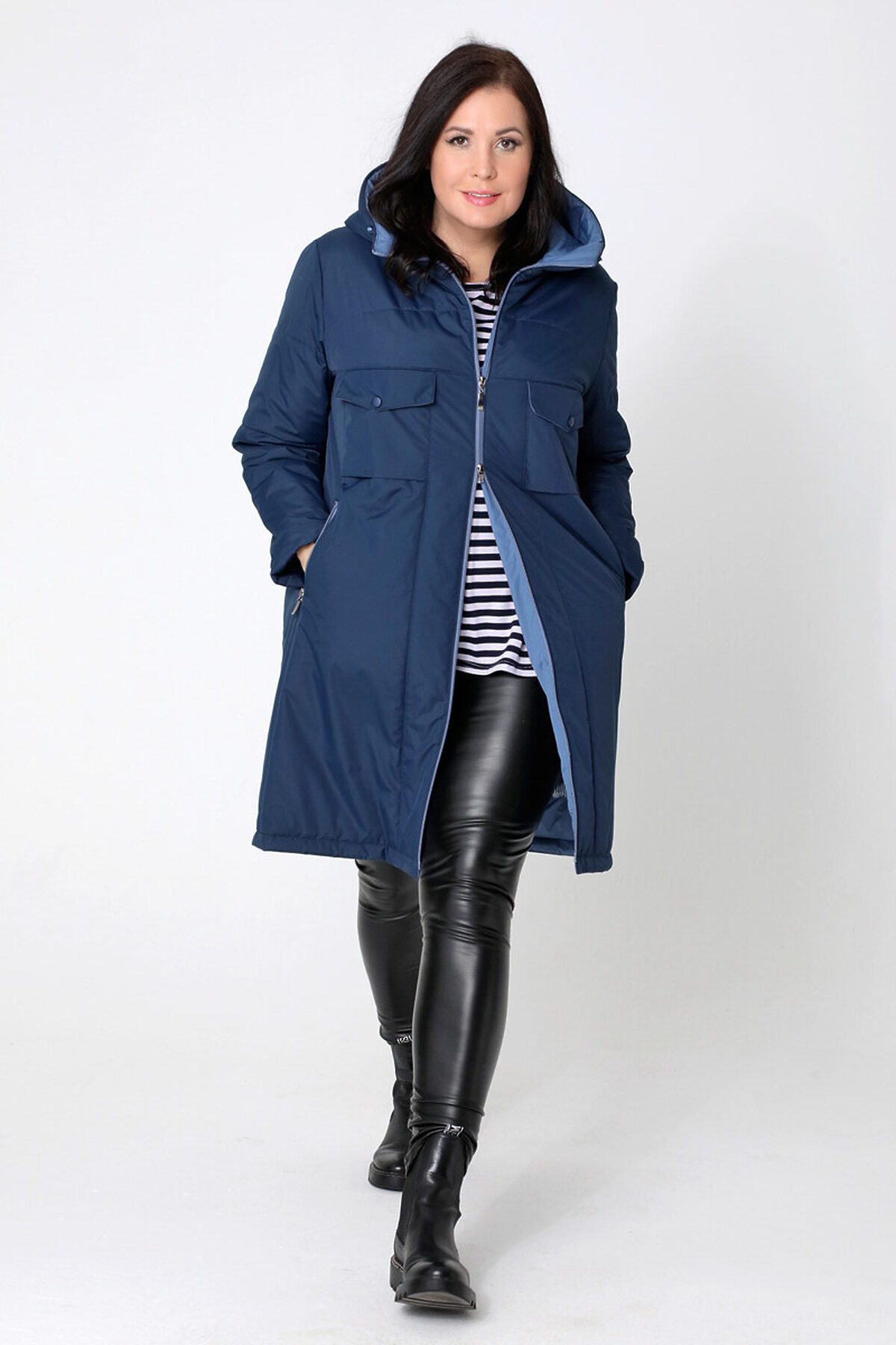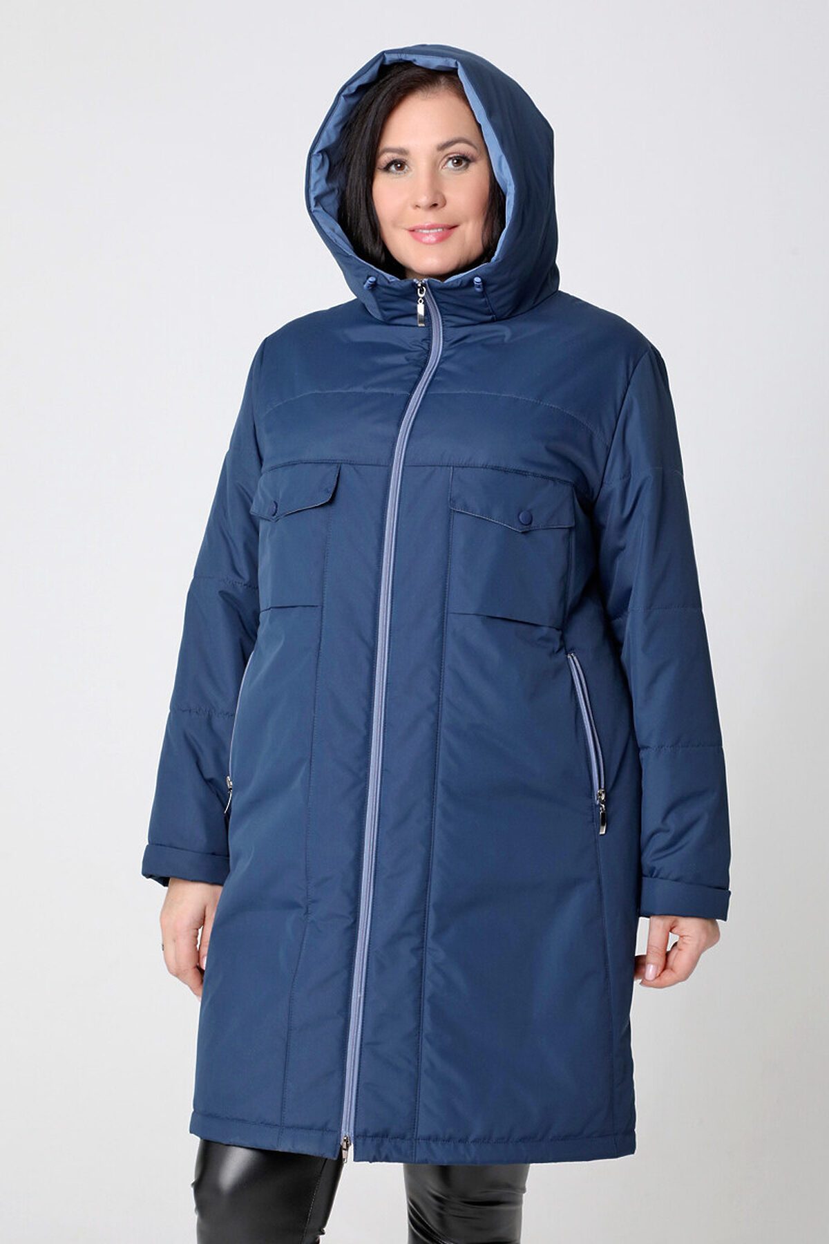 Утепленный плащ прямого силуэта с легким заужением книзу. Застежка - на двухзамковую молнию, что позволяет при необходимости регулировать комфортность шага. Воротник - стойка, переходящая в капюшон. Две пары функциональных карманов: нижние застегиваются на молнию, верхние - на кнопку. Есть внутренний кармашек на молнии. Длину втачного рукава можно регулировать за счет отворота. Контрастная внутренняя отделка и фурнитура освежают и зрительно вытягивают силуэт демисезонного пальто. Плащевая ткань имеет водоотталкивающую пропитку, которая выдержит небольшой дождь, снег и ветер. Хорошо зарекомендовавший себя утеплитель "Холлофайбер", плотностью 100гр/м, защитит от весенней прохлады. Подкладка в изделии выполнена из ткани в мелкую полоску. Утепленный плащ такой длины хорошо сочетается как с брюками, так и с юбкой или платьем, а с помощью обуви и аксессуаров Вы можете менять свой стиль.
