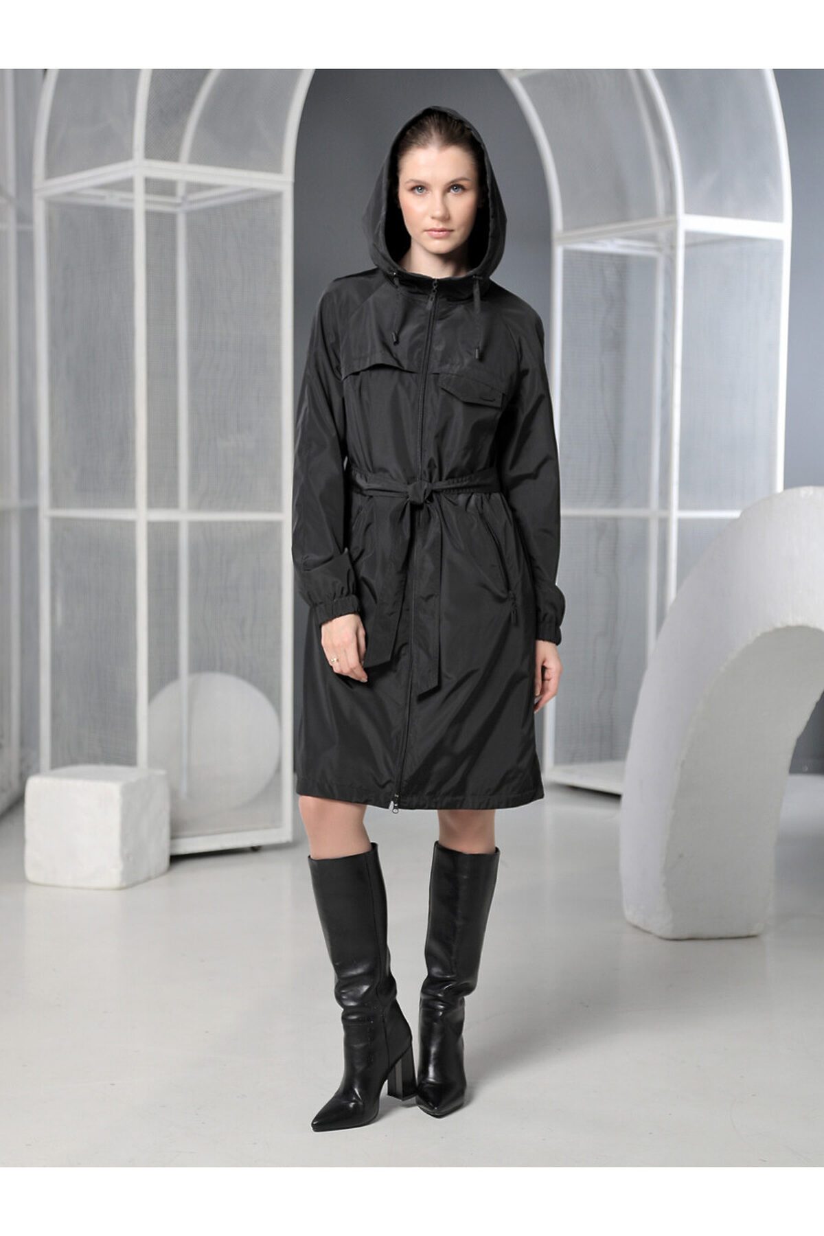 Демисезонный плащ длиной до колена.