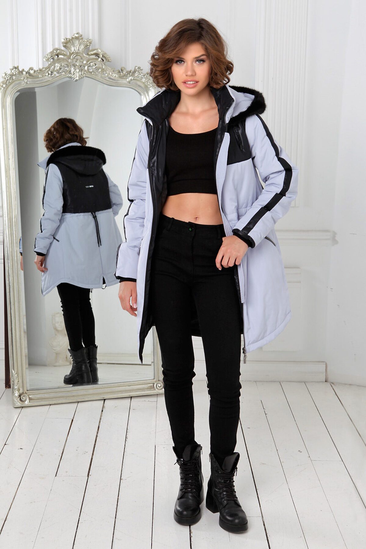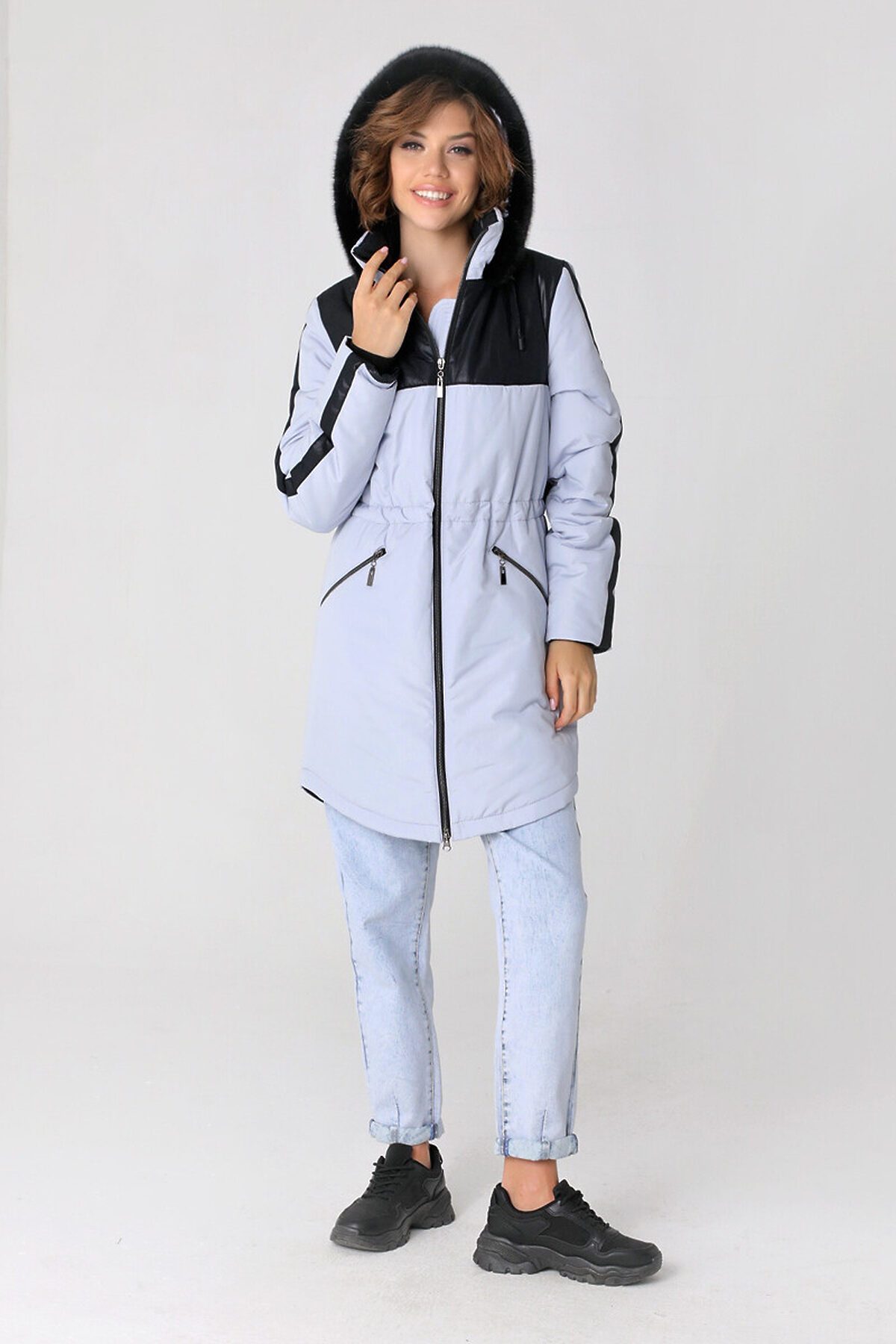 Демисезонная куртка прямого силуэта с застежкой на двухзамковую молнию подойдет для женщин и девушек любого возраста. Воротник - уютная стойка. Капюшон оформлен красивым искусственным мехом; опушка не отстегивается, но очень хорошо стирается и легко восстанавливает свой внешний вид. Свободный прямой силуэт этой модной парки можно изменить с помощью кулиски на линии талии. Удобно расположенные прорезные карманы, застегиваются на молнию. Есть внутренний кармашек, тоже на молнии. Сочетание двух контрастных тканей по-прежнему остается актуальным трендом в одежде! Эта стильная удлиненная куртка-парка выручит Вас осенью, весной и ранней зимой. Плащевая ткань имеет водоотталкивающую пропитку, которая выдержит небольшой дождь, снег и ветер. Хорошо зарекомендовавший себя утеплитель Холлофайбер плотностью 150 гр/м защитит от холода.