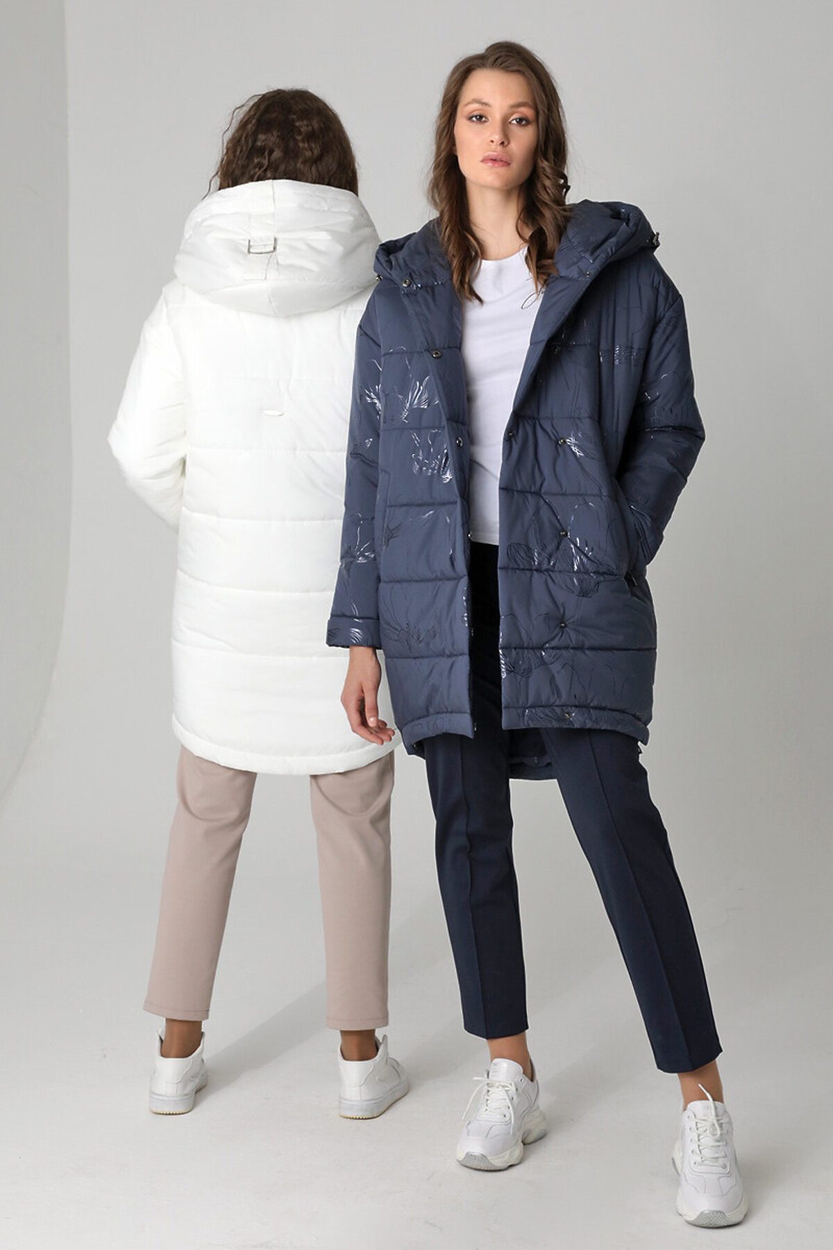 Удлинённая зимняя куртка с капюшоном.