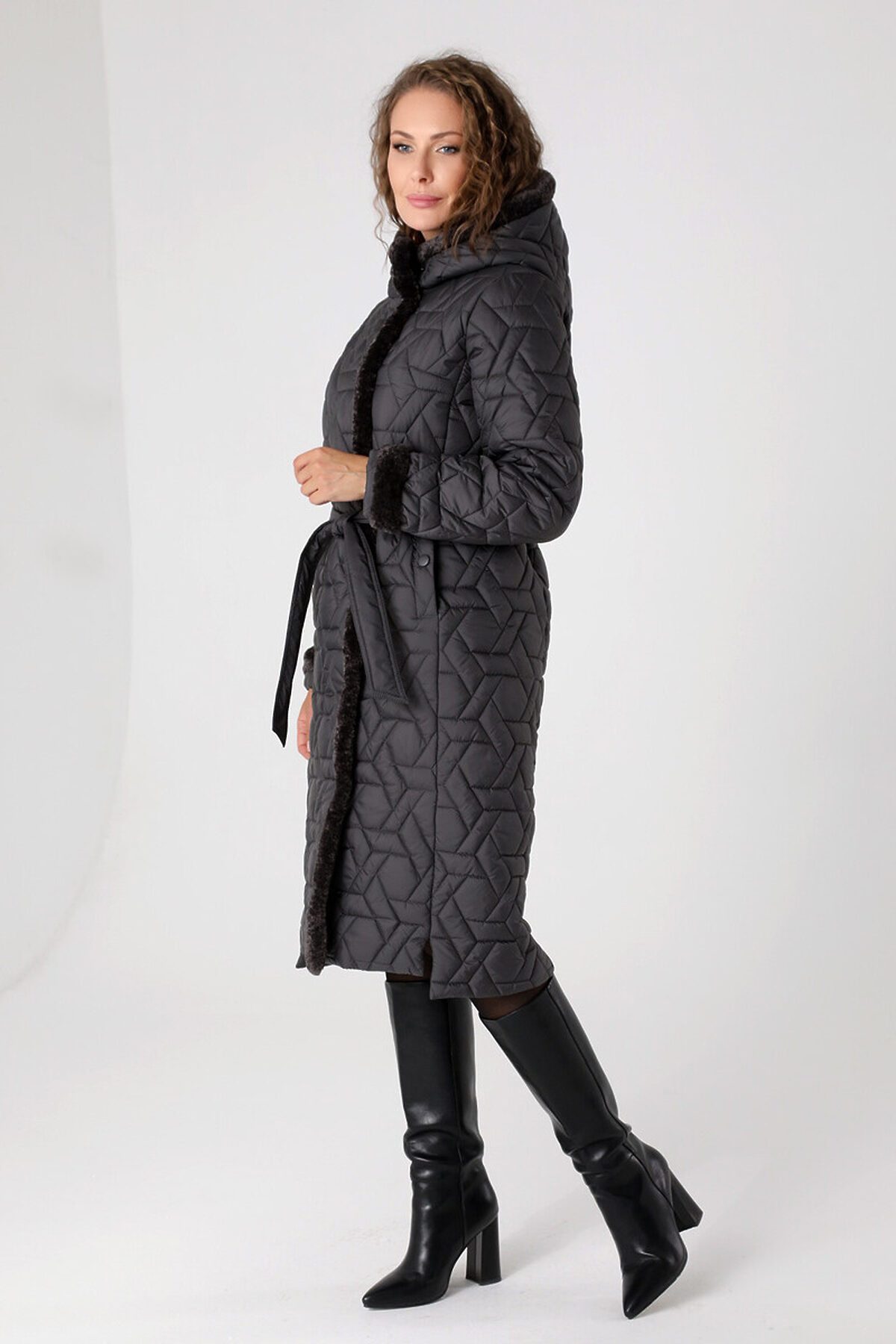Зимнее пальто с поясом.