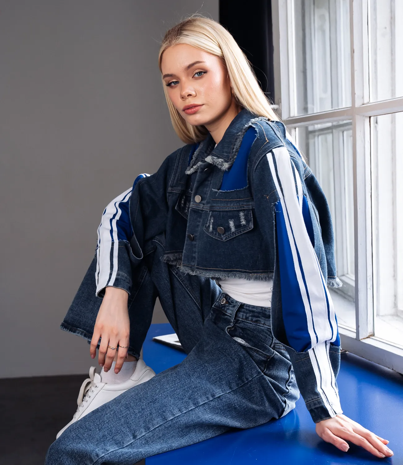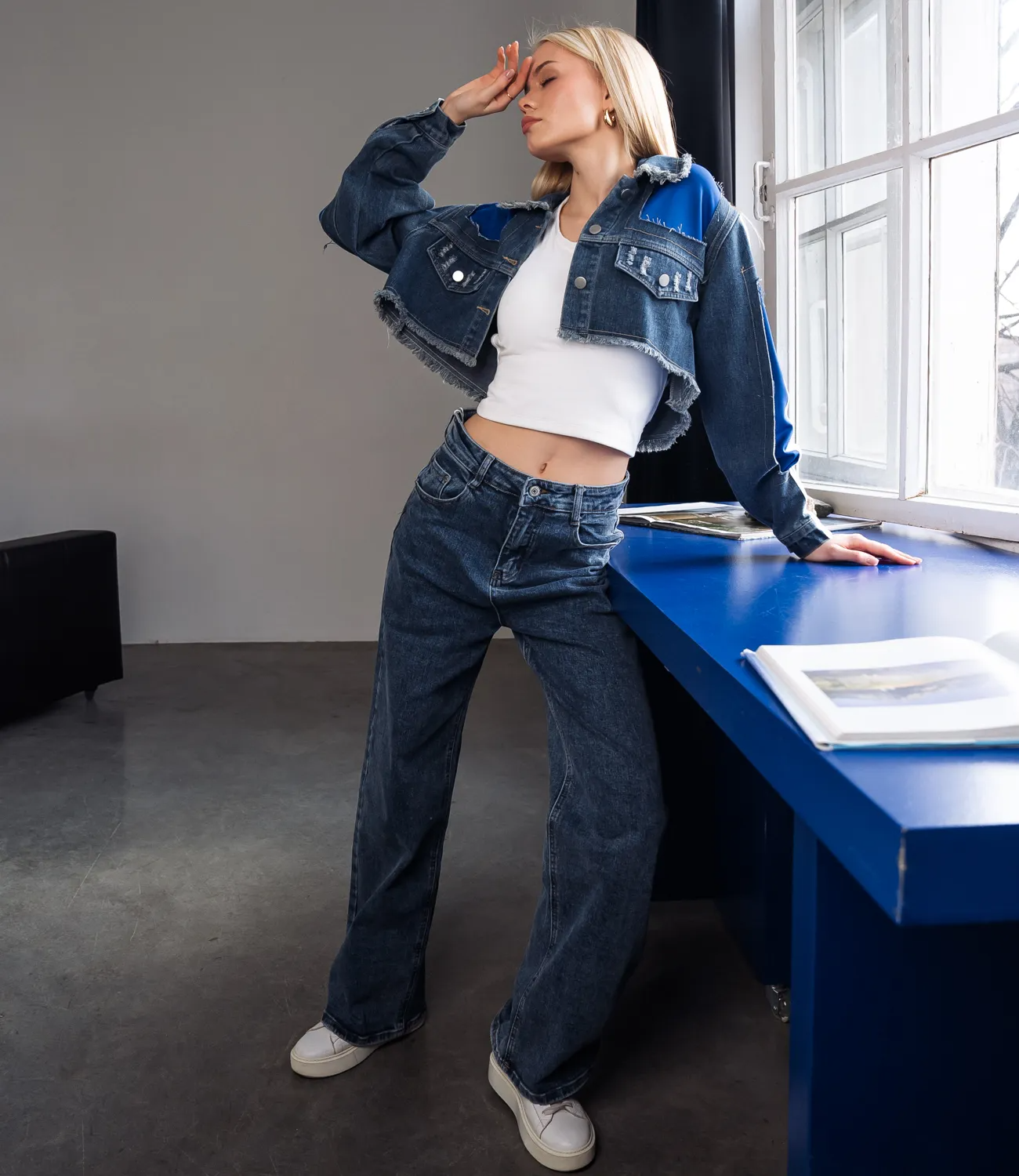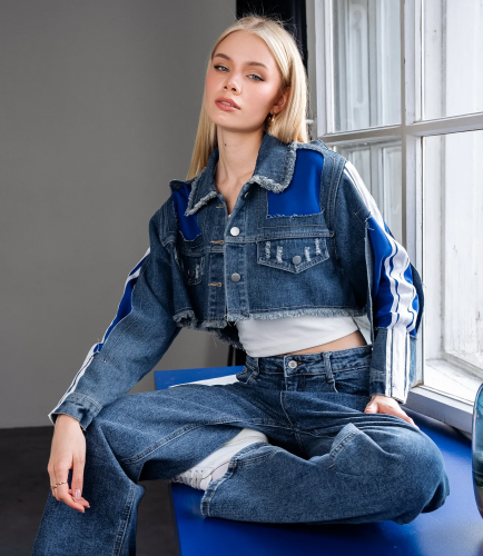 Джинсовая куртка обладает классическим дизайном с воротником и застежкой на пуговицы, что делает её универсальной и подходящей для различных стилей и образов. Джинсовая ткань обеспечивает долговечность и стойкость к износу, делая куртку практичной и долговечной. Она также отличается хорошей воздухопроницаемостью и комфортом при ношении. Рост модели 172 см, 82-62-92.