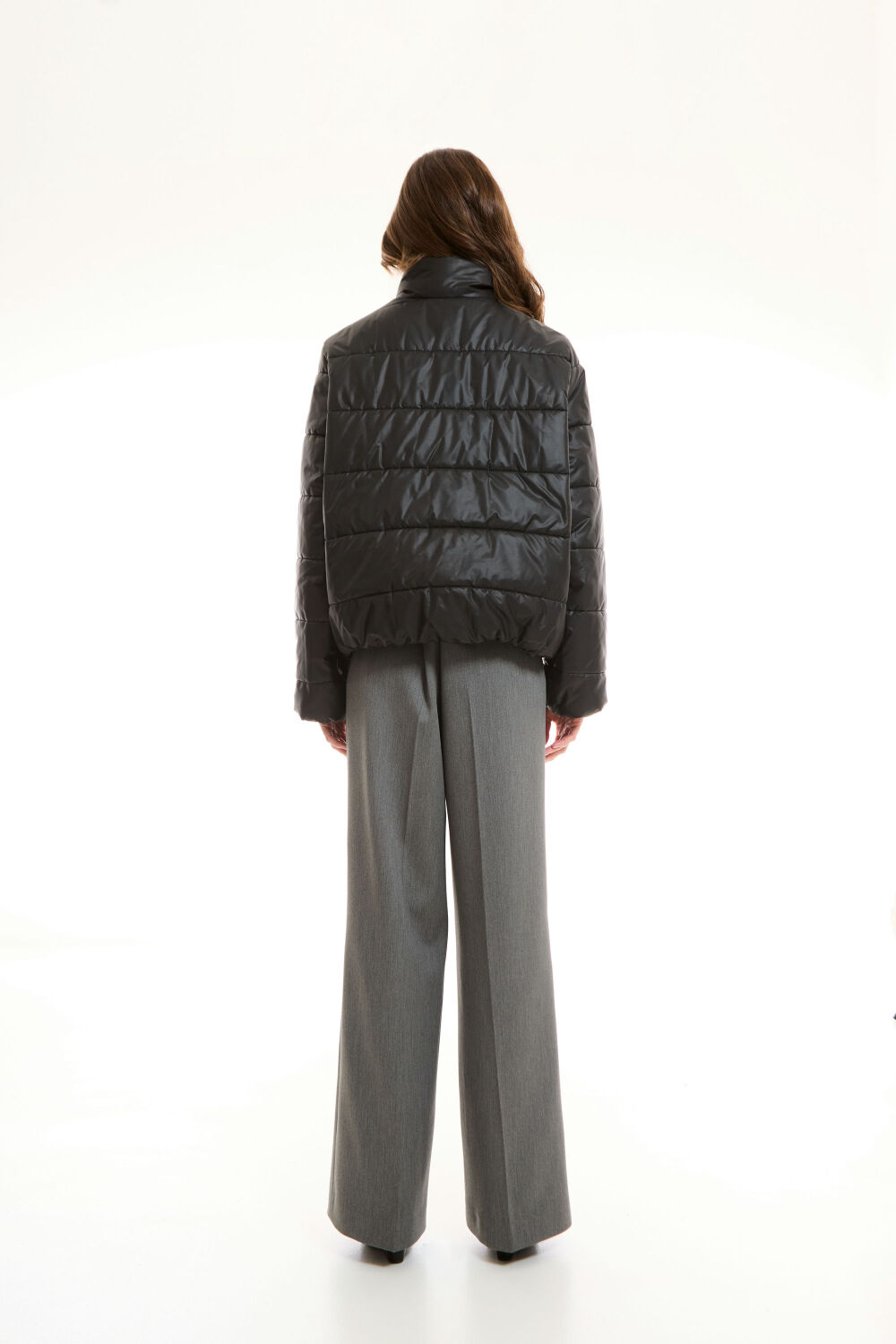 Куртка женская плащевая, утепленная, стеганая на утеплителе. Прямого силуэта, длиной до середины бедра, на подкладке. Застежка на потайные пробивные кнопки. На переде карманы в рельефе. Рукав длинный на резинке по низу. Воротник стойка. Низ изделия собран на резинку.