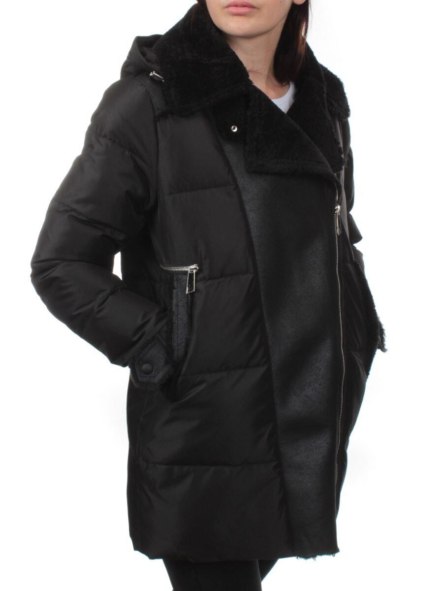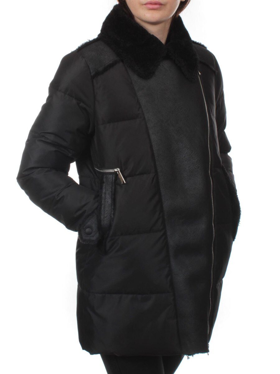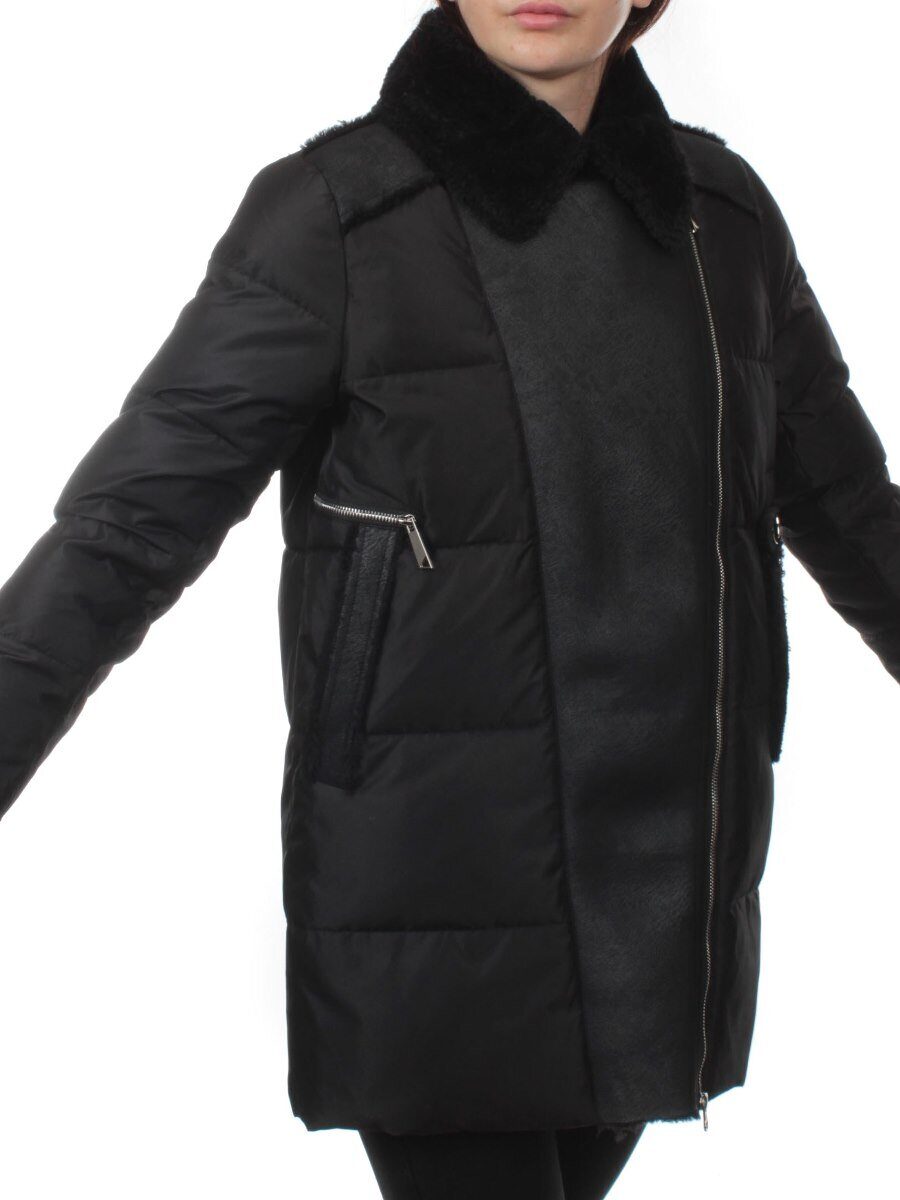 033 BLACK Куртка зимняя облегченная женская (холлоффайбер 150 гр., искусственная дубленка)