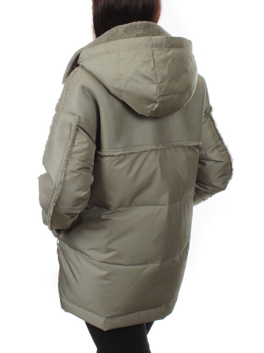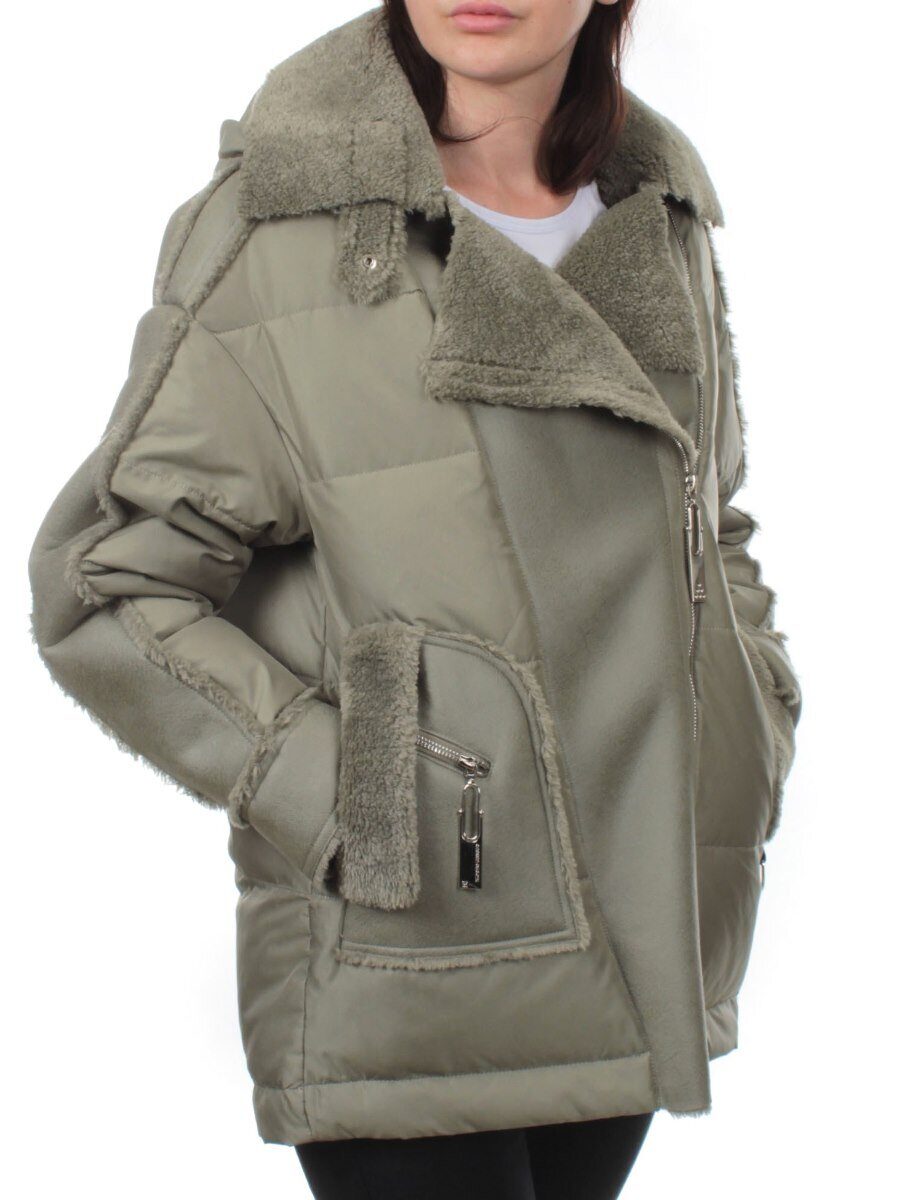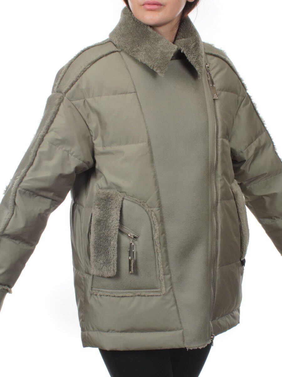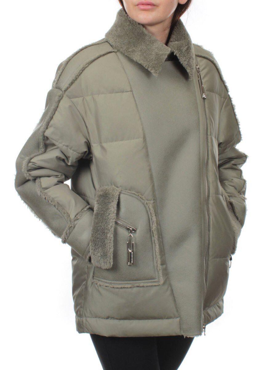 902 GRAY/GREEN Куртка зимняя облегченная женская (холлоффайбер 150 гр., искусственная дубленка)