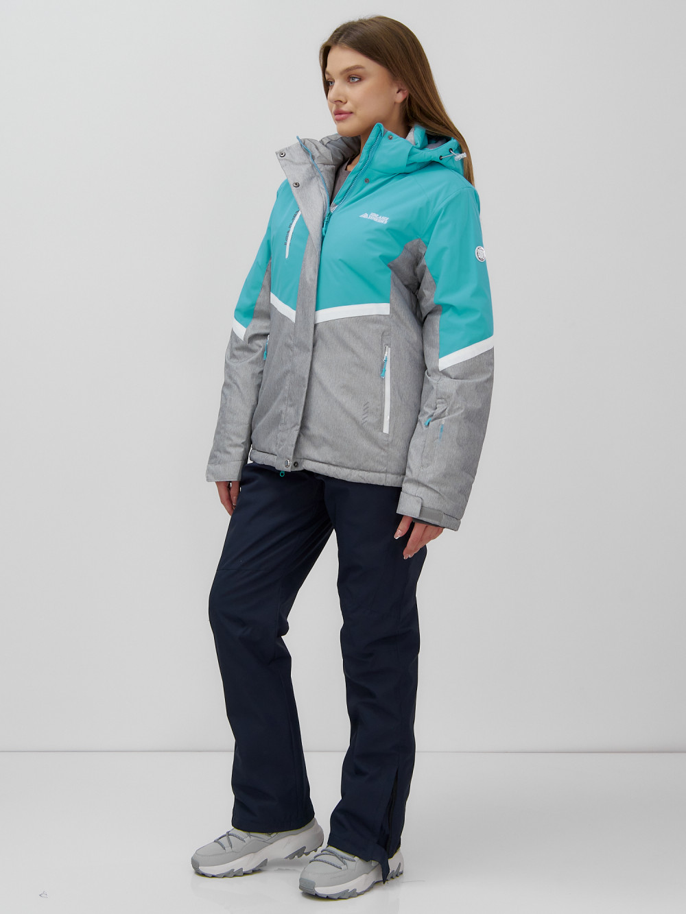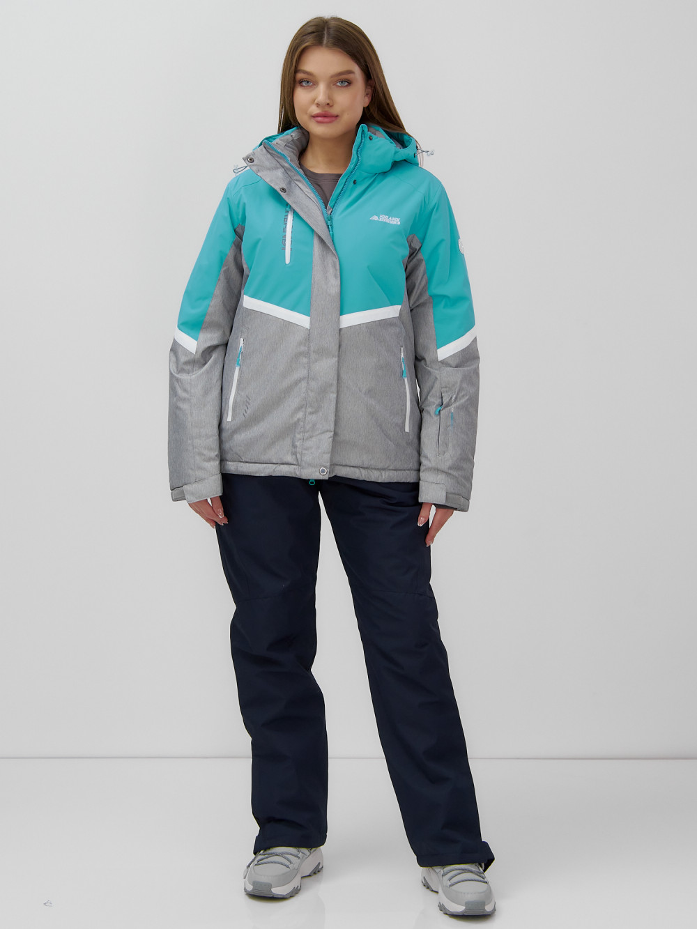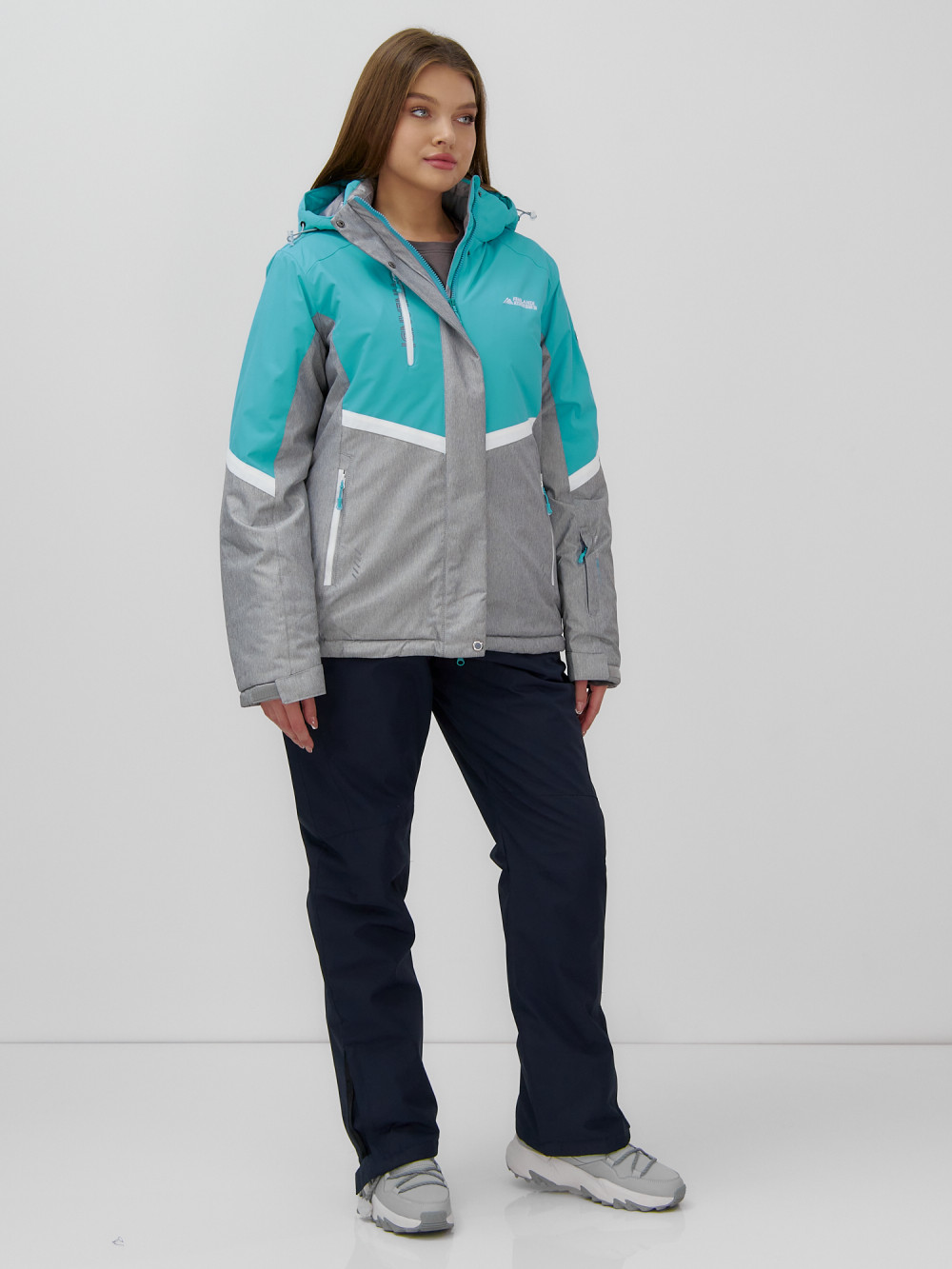 Женский горнолыжный костюм включает в себя куртку и полукомбинезон.