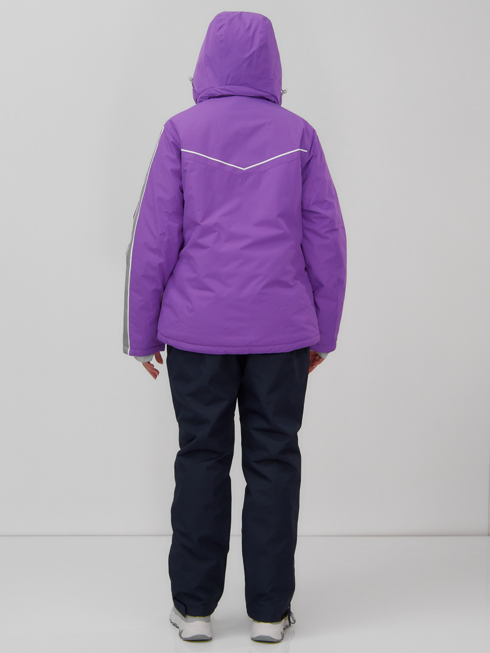 Однотонная куртка с контрастными вставками на рукавах и груди выглядит оригинально и стильно, что делает этот комплект не только практичным, но и модным выбором для зимнего отдыха.
