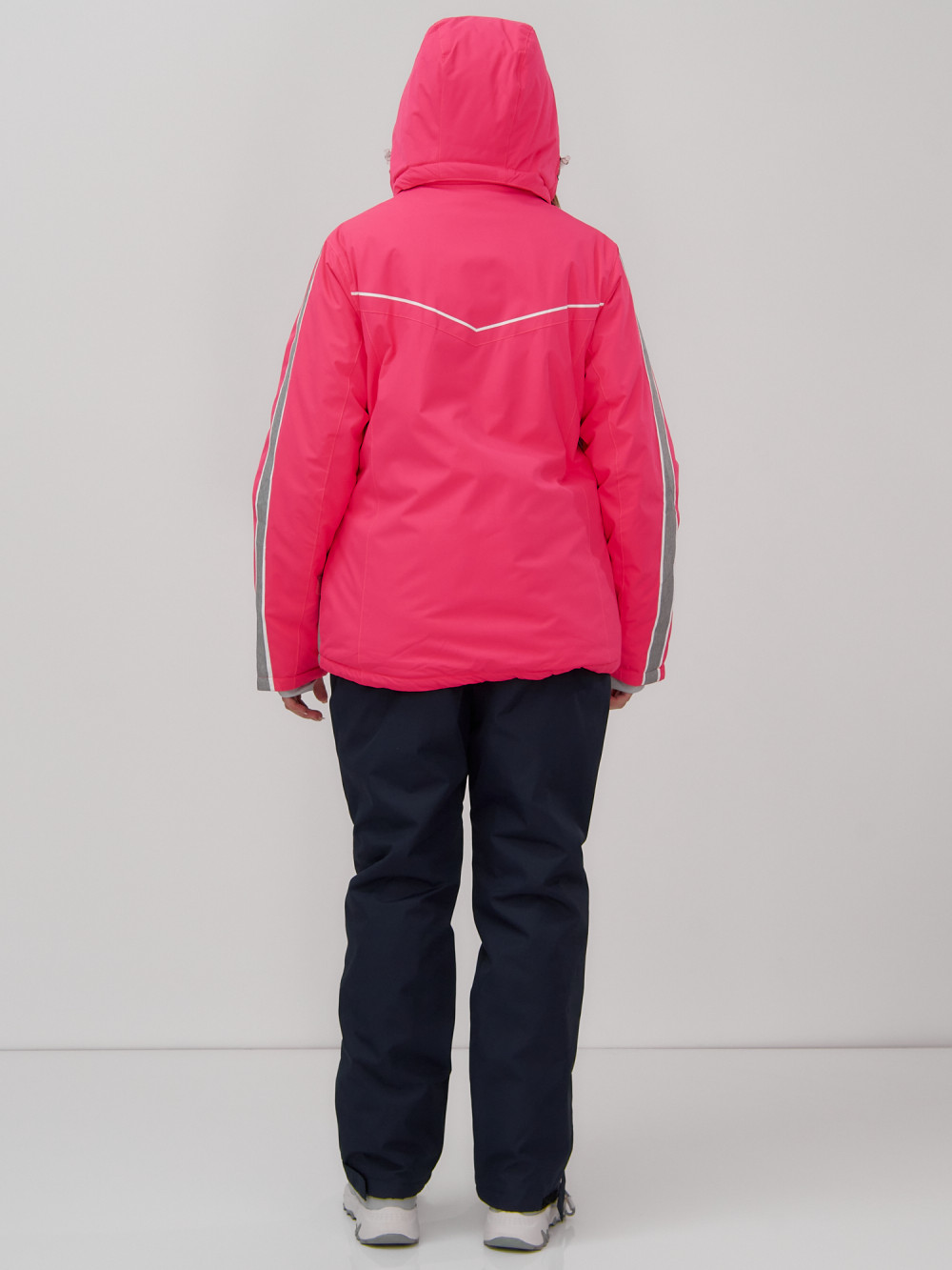 Однотонная куртка с контрастными вставками на рукавах и груди выглядит оригинально и стильно, что делает этот комплект не только практичным, но и модным выбором для зимнего отдыха.