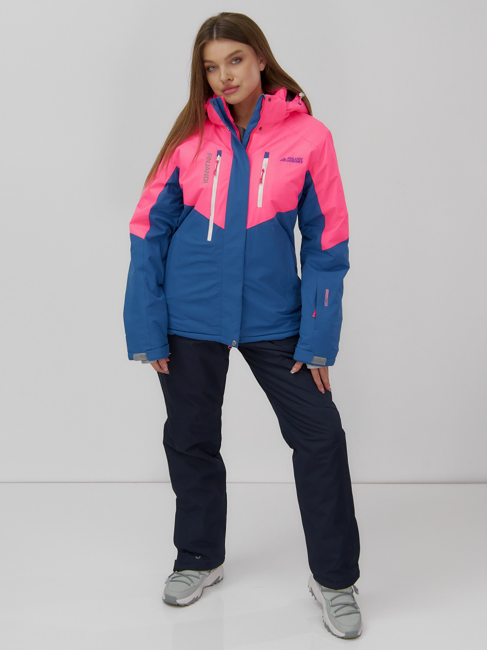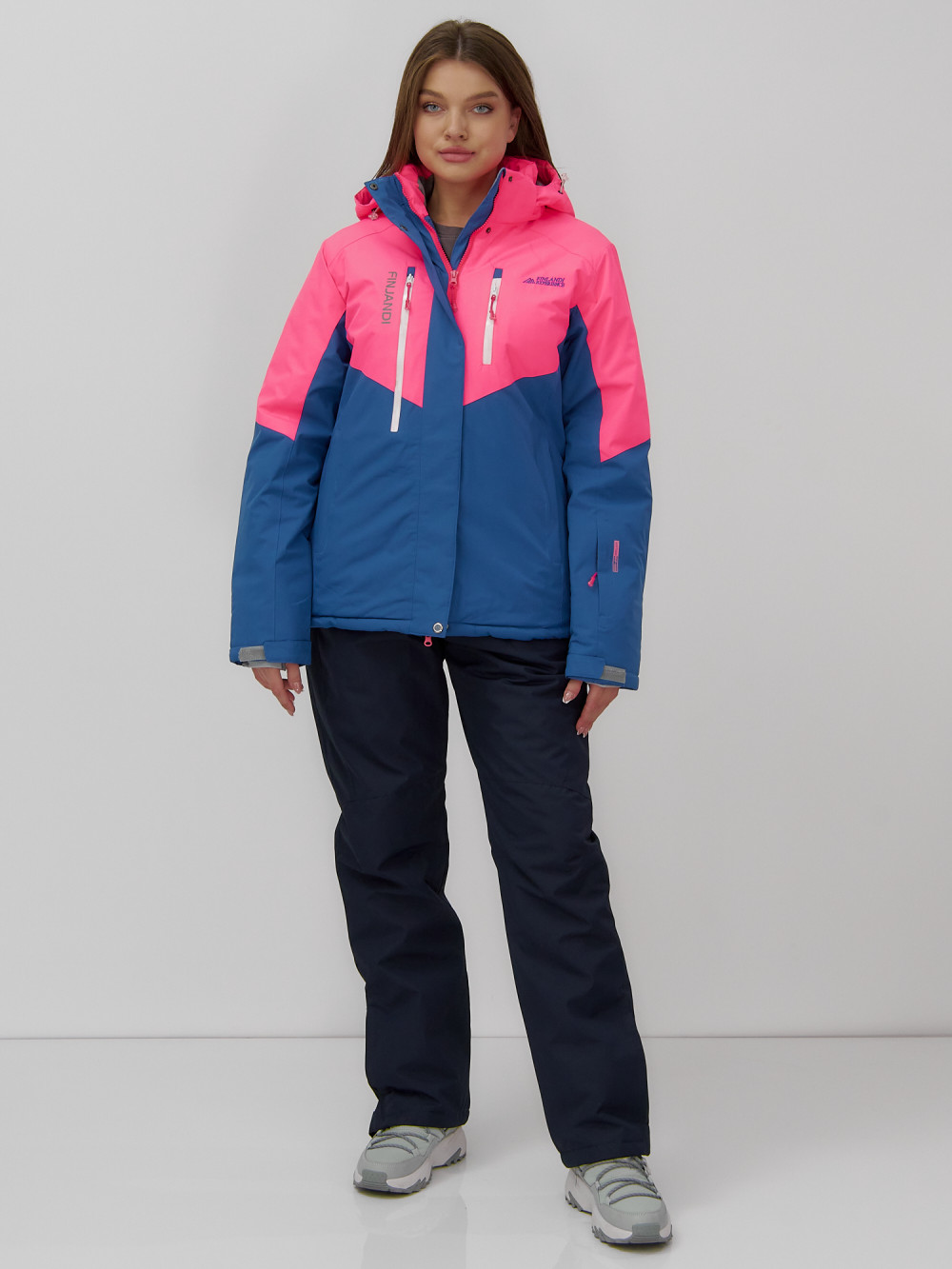 Принт куртки сочетает в себе современную сдержанность и стиль, что делает этот костюм не только практичным, но и модным выбором для зимнего отдыха.