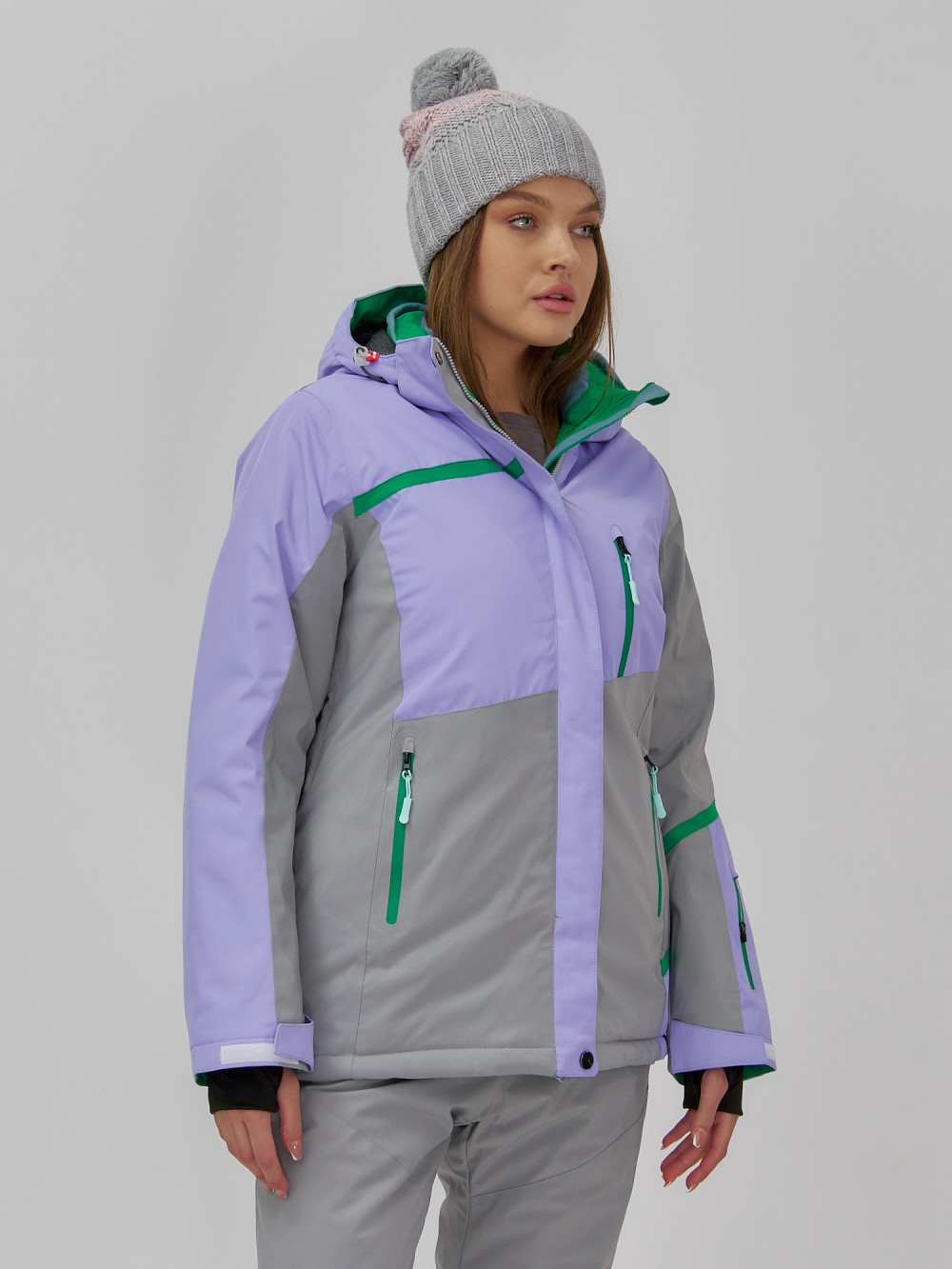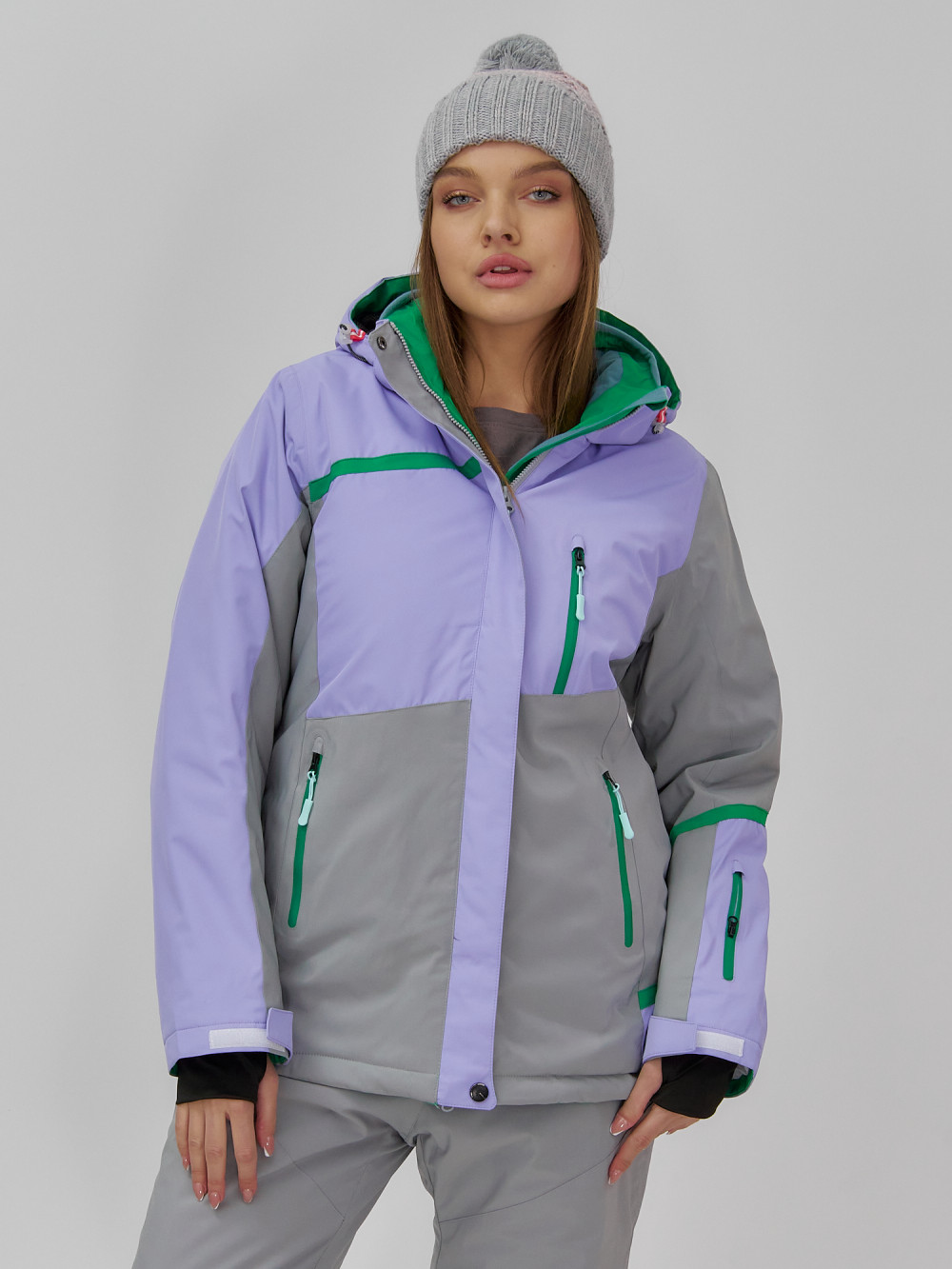 Гоннолыжная куртка женская зимняя сиреневого цвета 709Sn