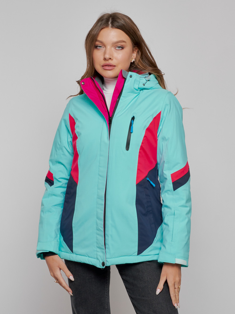 Горнолыжная куртка женская зимняя бирюзового цвета 2201-1Br