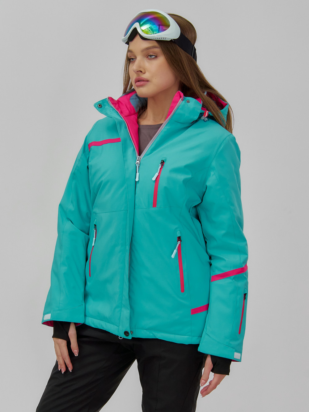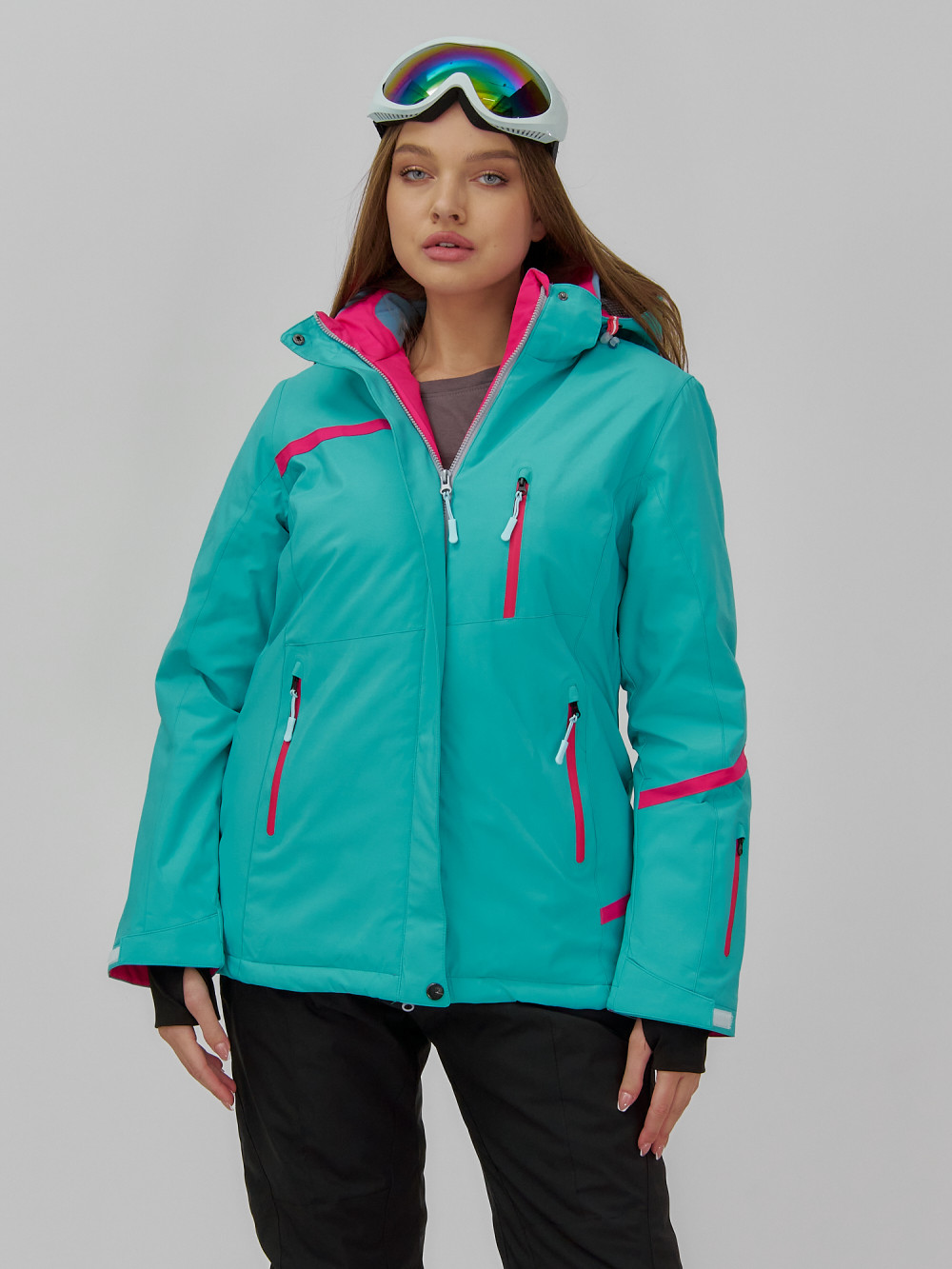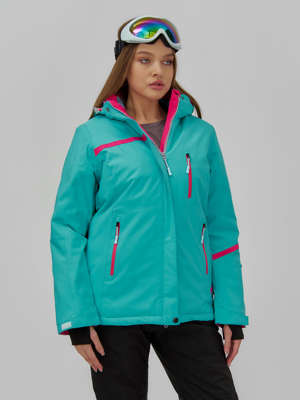 Горнолыжная куртка женская зимняя бирюзового цвета 7091Br