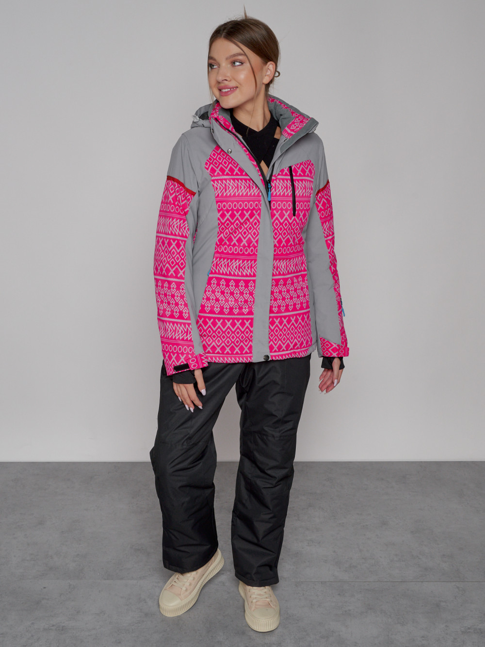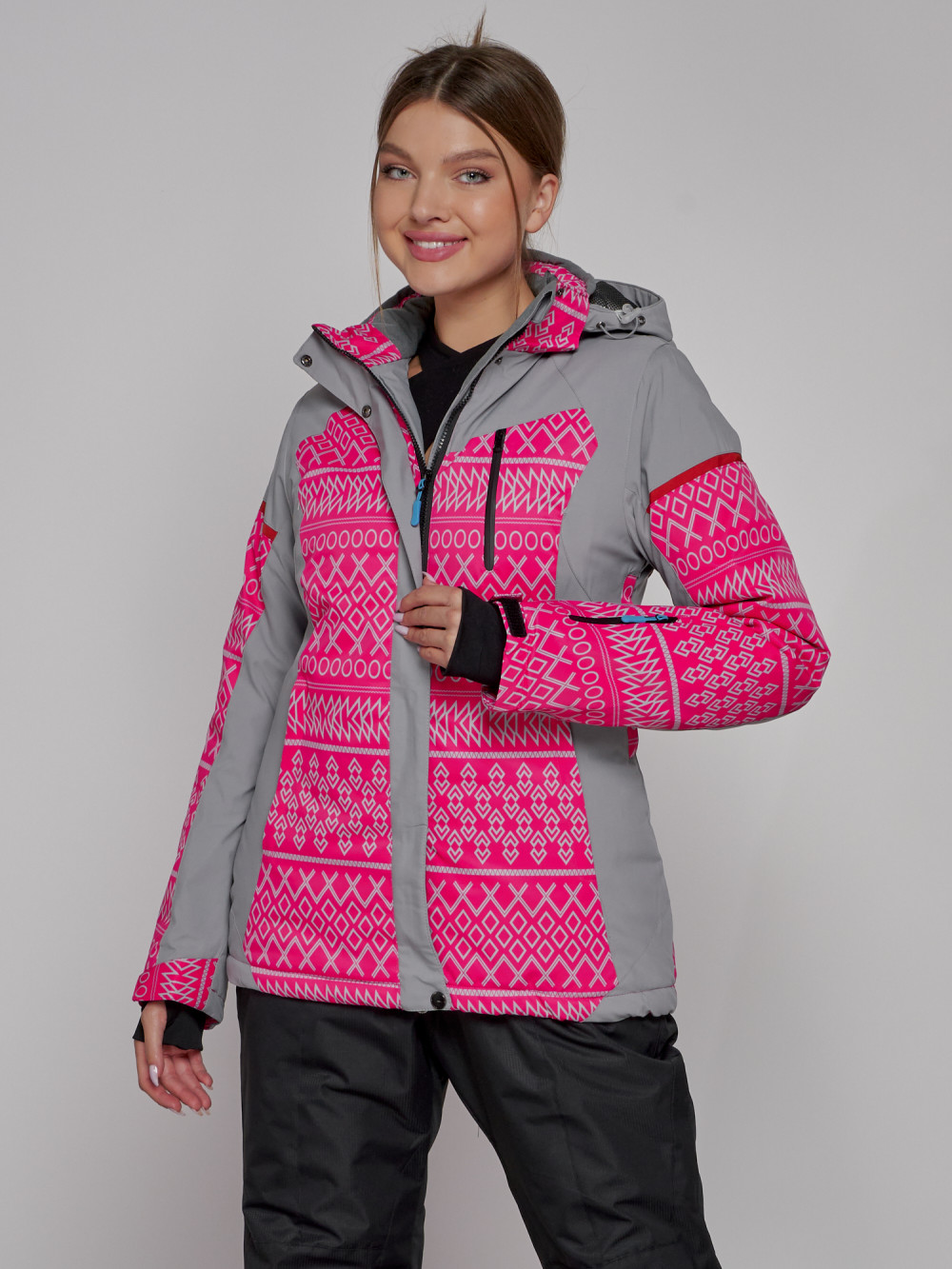 Горнолыжная куртка женская зимняя розового цвета 2272R