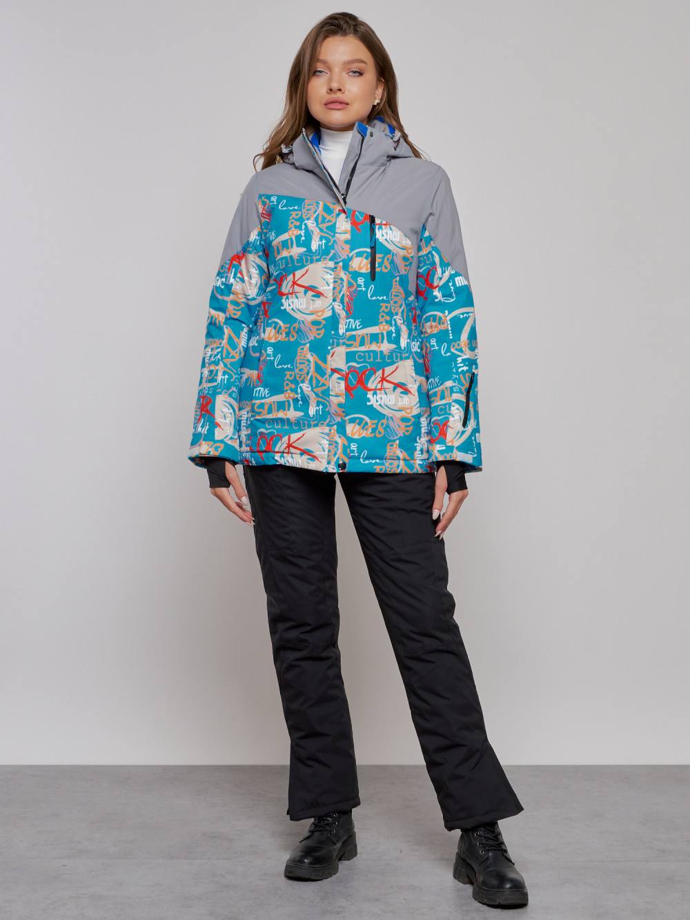 Горнолыжная куртка женская зимняя синего цвета 2252S