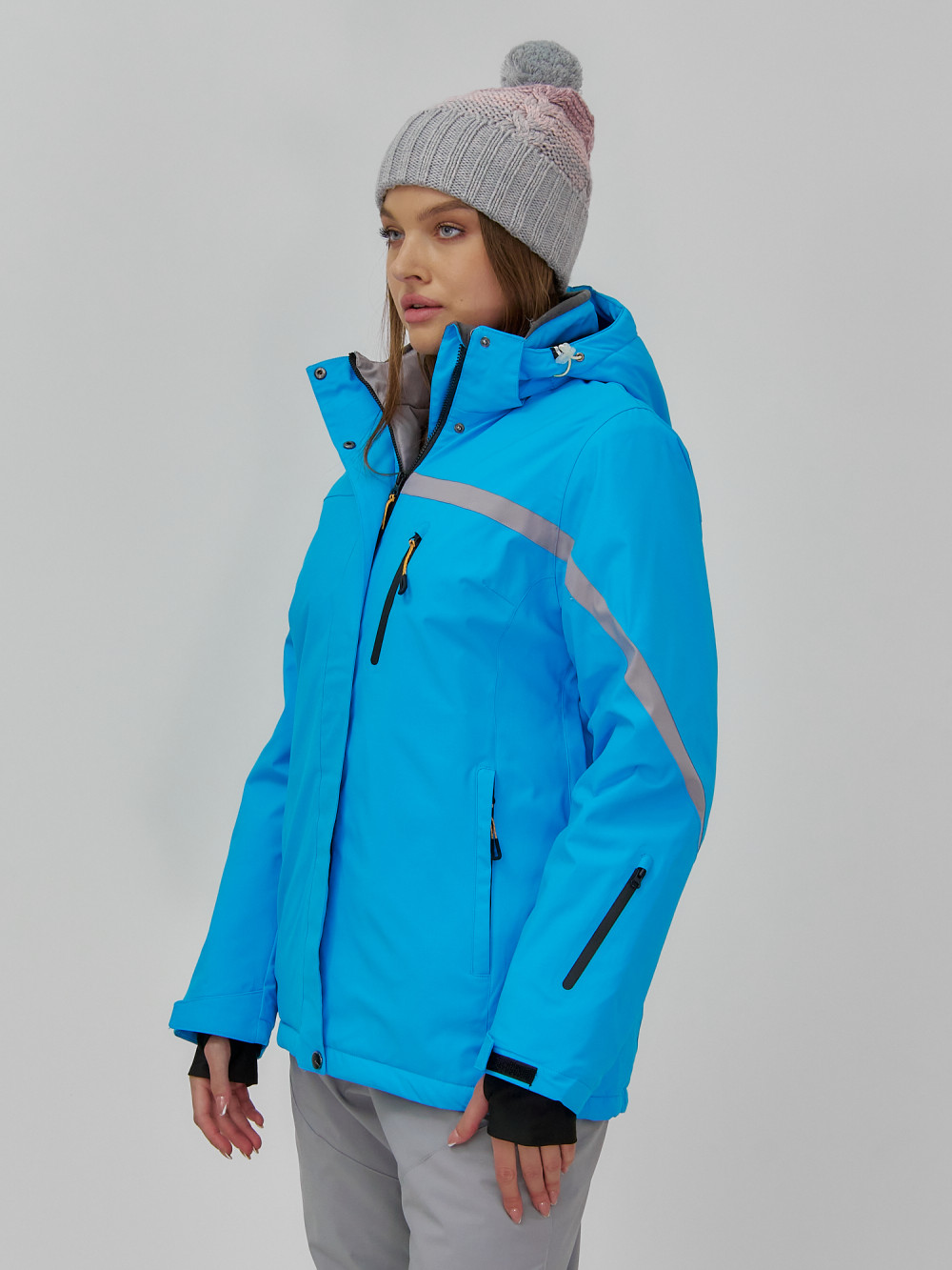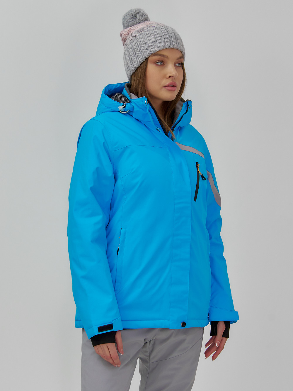 Горнолыжная куртка женская зимняя синего цвета 7017S