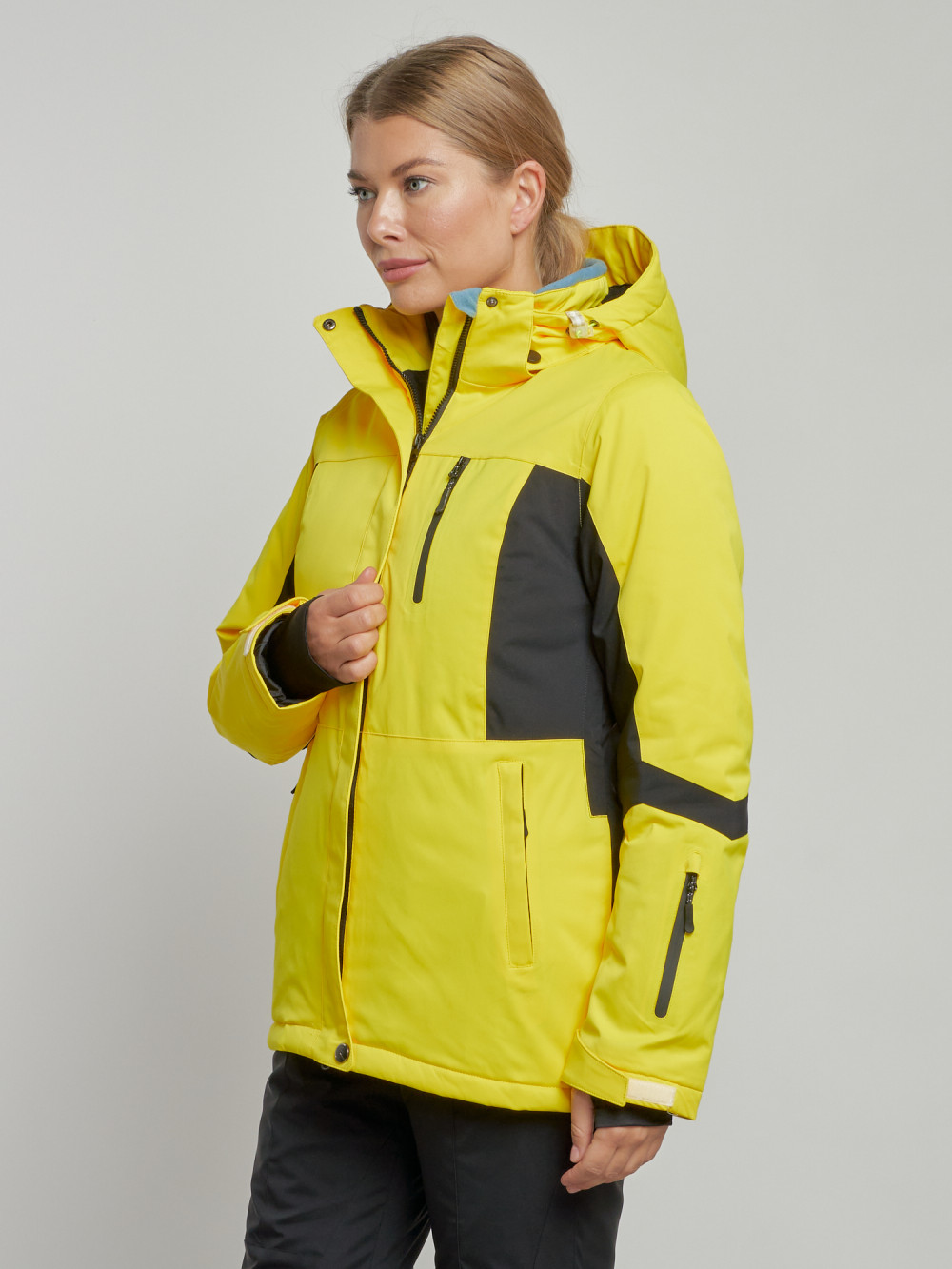Горнолыжная куртка женская зимняя желтого цвета 3105J