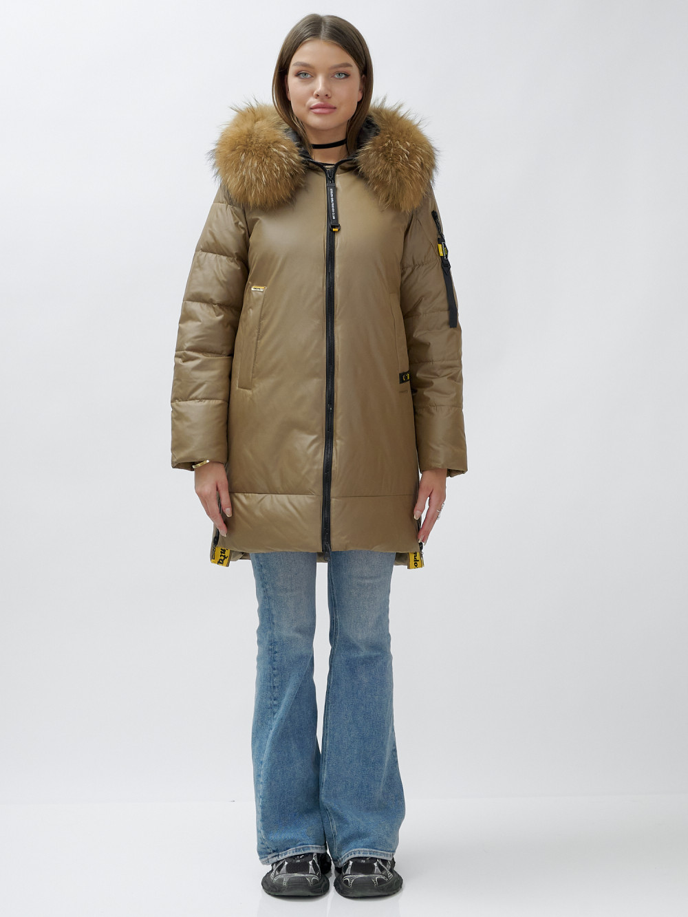 - Несъемный капюшон с съемной опушкой из натурального меха енота: обеспечивает тепло и защиту от холода, добавляя изысканности вашему образу.