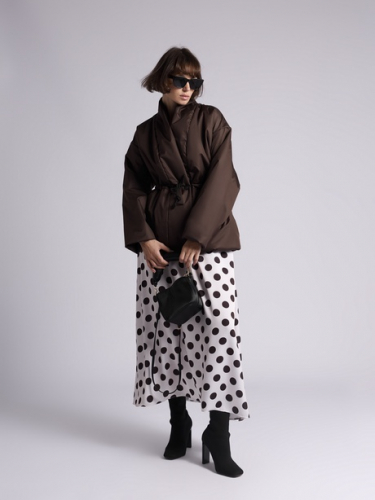 Пуховик силуэта трапеция – это максимум тепла вверху и свобода движения внизу. Пируэтам на коньках, перепрыгиванию луж и комфорту во время вождения быть! При желании пуховик можно приталить при помощи пояса, который идет в комплекте.