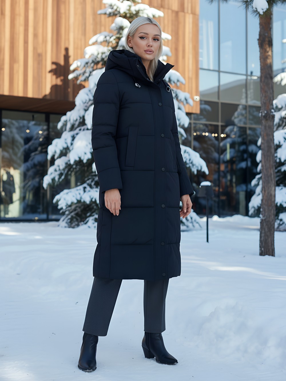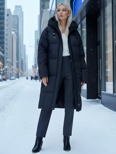 Женское утепленное зимнее пальто с капюшоном - находка для активной девушки. Исследуйте границы стиля и комфорта с новой зимней курткой! Это не просто пальто, это ваша защита и уверенность в любую непогоду. С длиной ниже колена и прямым кроем, это пальто создает элегантный и современный силуэт, подходящий для любого случая.
