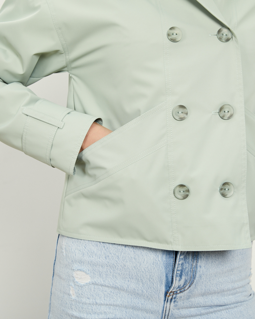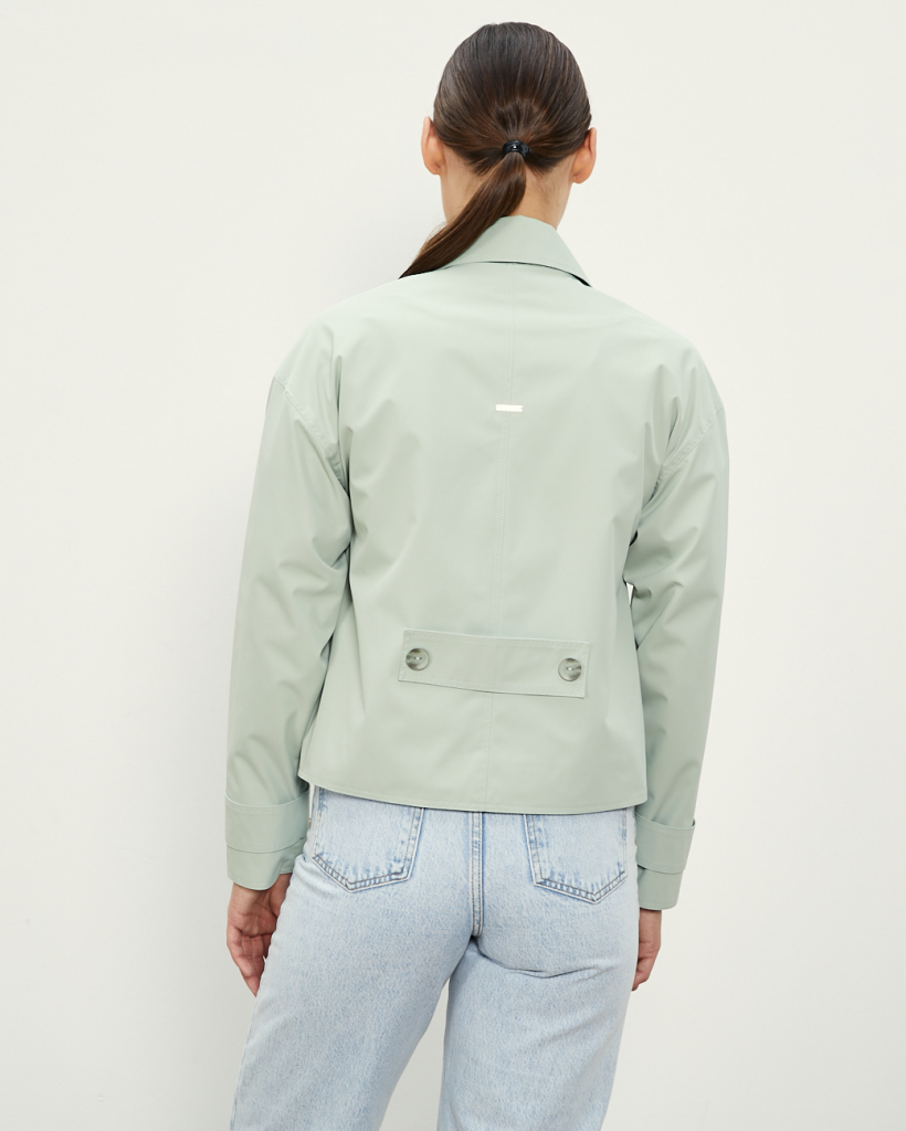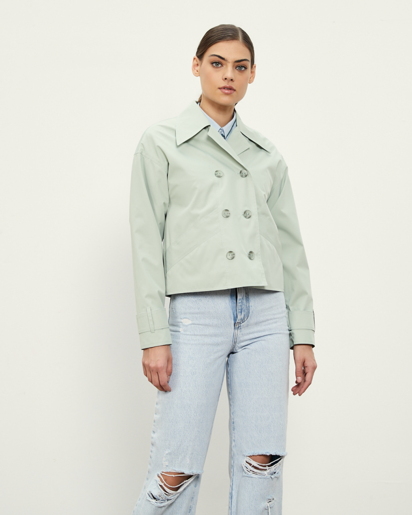 Легкая короткая куртка свободного силуэта с застежкой на молнию и кнопках. Изделие идет с объемным отстежным капюшоном на кнопках. В изделии имеются два настрочных кармана, вход в карман сбоку и сверху, а также есть один внутренний карман. Ткань изделия хлопкосодержащая, обработана качественной водоотталкивающей пропиткой. Изделие без утепления, рекомендуемый температурный режим от +17°C до +23°C. Длина изделия: 65 см. Длина рукава: 64 см. Размеры: 42-56.
