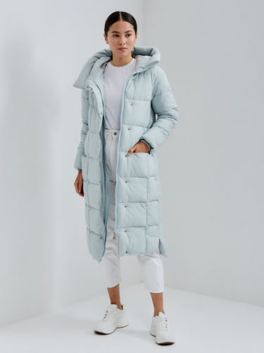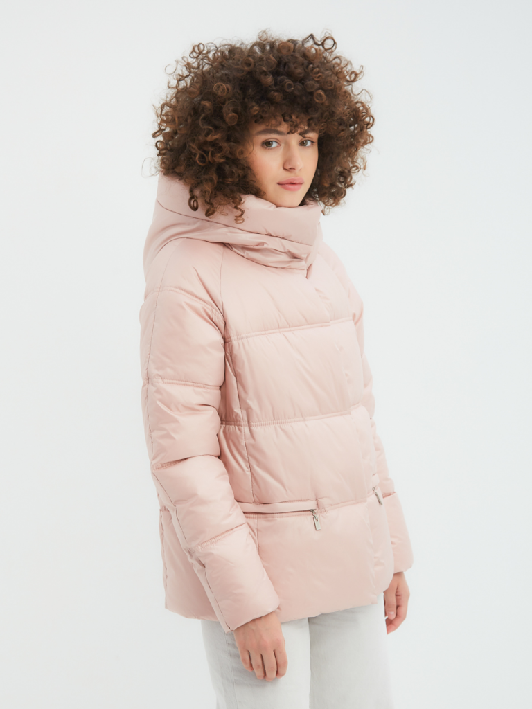 Стильная пуховая куртка прямого силуэта. Рукав покроя реглан с трикотажной манжетой, центральная застежка молния с цельнокроеной планкой на потайных кнопках, два кармана на молнии в швах. Низ изделия оформлен утяжкой на шляпную резинку. В изделии имеется внутренний карман на молнии. Плащевая ткань- Flare с пропиткой. Утепление Био-пух (от -15°C до -0°C). Длина изделия- 65 см, длина рукава- 64 см. Размеры:42-56. Цвета: светло-бирюзовый, светло-бежевый, графит, пудра. Рост модели 173-178 см.