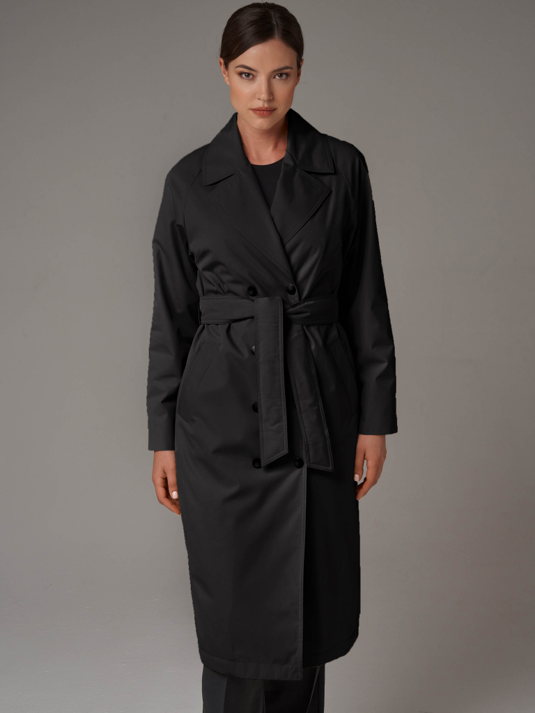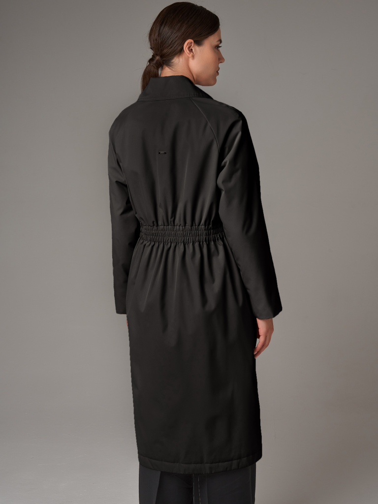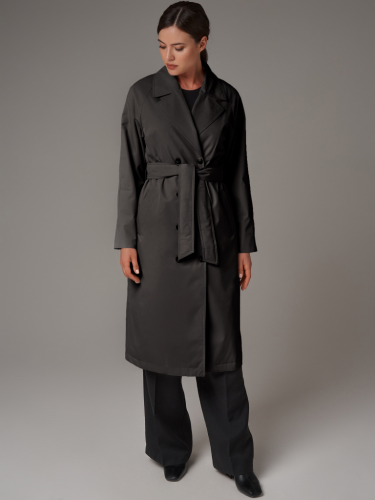 Утепленный плащ прямого силуэта. Рукав реглан с удобной заниженной проймой. Застежка декоративные кнопки. В изделии два кармана, оформленных листочками на потайных кнопках и один внутренний карман. Плащ утягивается на спине по линии талии на широкую резику. В комплекте есть пояс из основной ткани. Ткань плащевая, матовая на мембране и с водоотталкивающей пропиткой. Утепление нового поколения ORSOTHERM 60 г/м2. Рекомендуемый температурный режим(от +13°C до +18°C). Длина изделия -110 см. Длина рукава - 64 см.