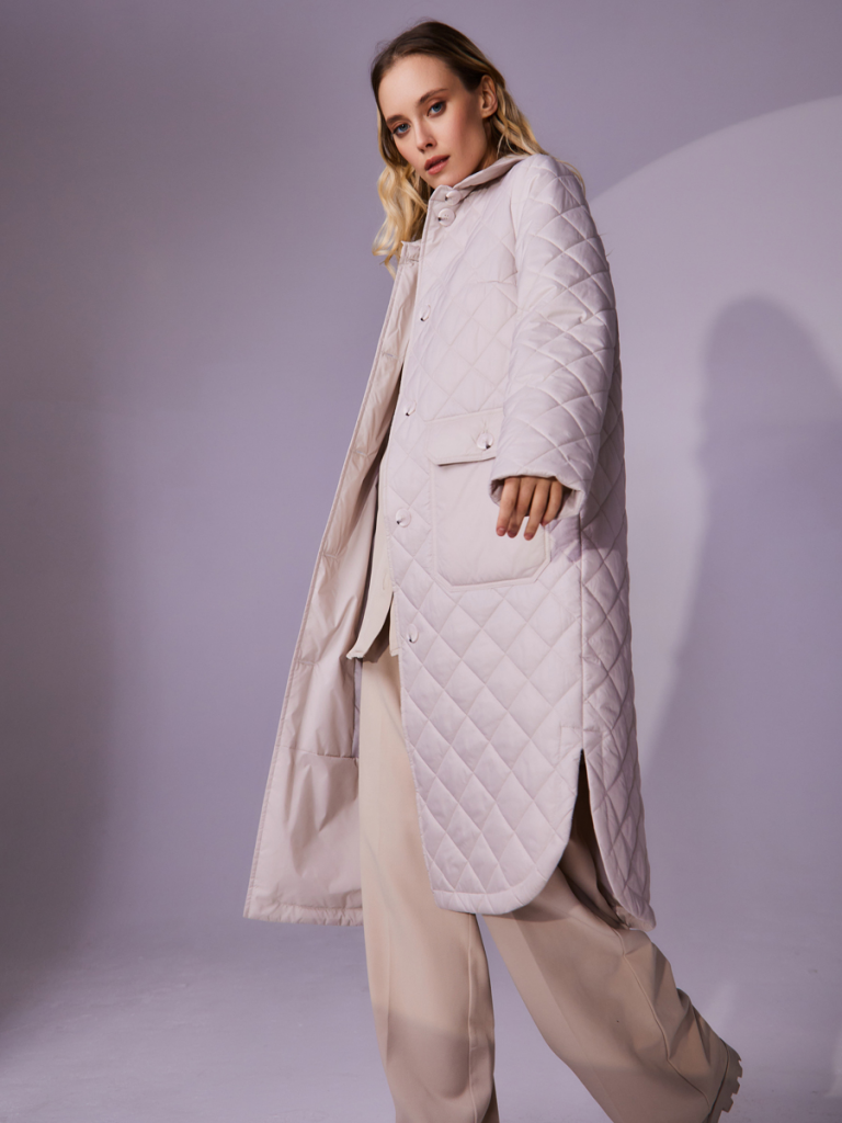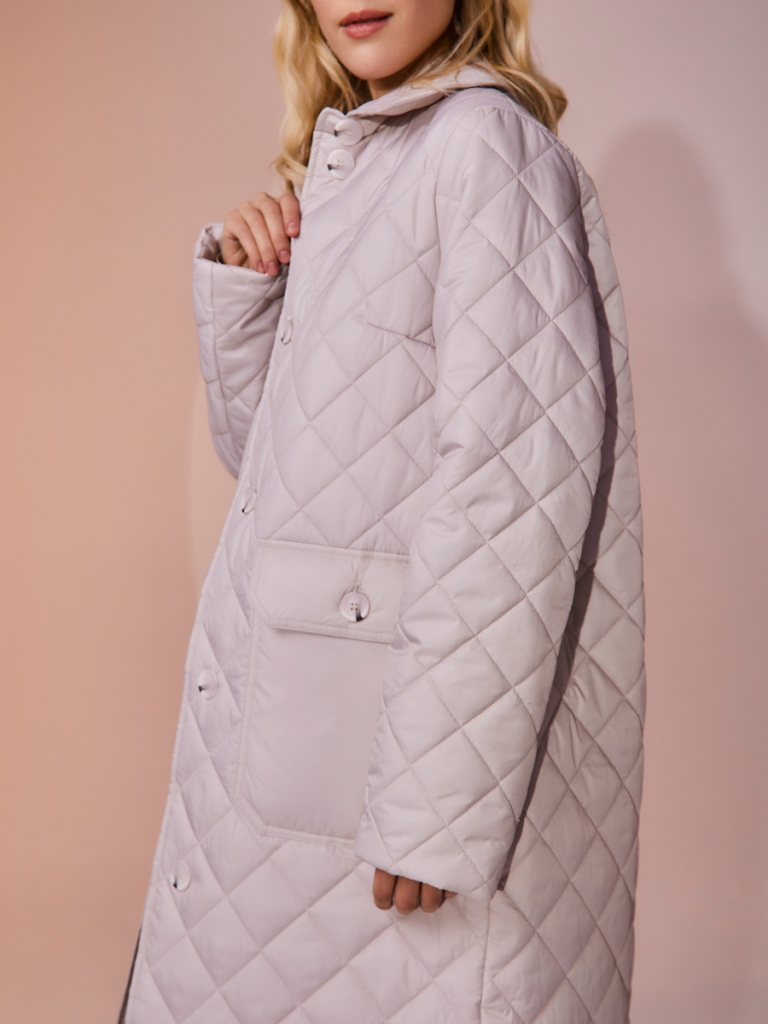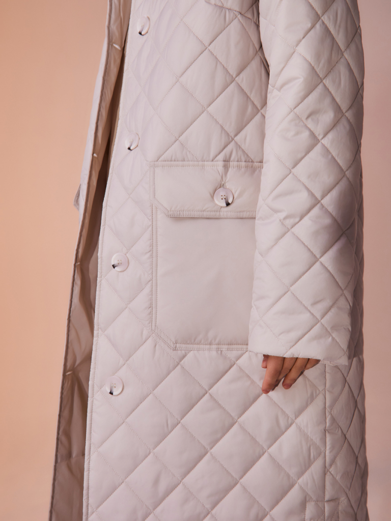 Утепленный плащ-рубашка прямого силуэта с втачным рукавом. В модели имеются два функциональных накладных кармана с клапанами на пуговицах, а также один внутренний карман. Ткань - плащевая с водоотталкивающей пропиткой, расстеганная ромбом. Утепление нового поколения ORSOTHERM 100 гр. Рекомендуемый температурный режим от +10°C до +18°C. Длина изделия: 110 см. Длина рукава: 64 см. Размеры: 42-56.