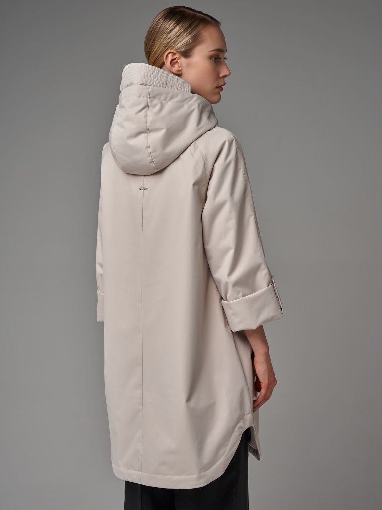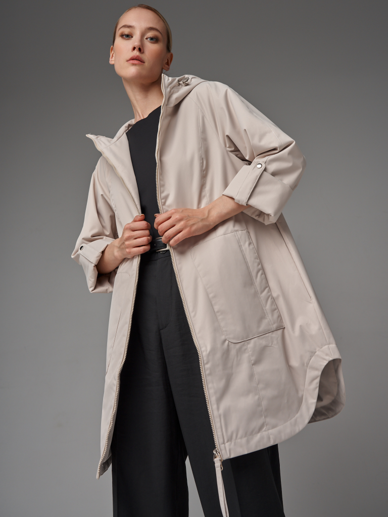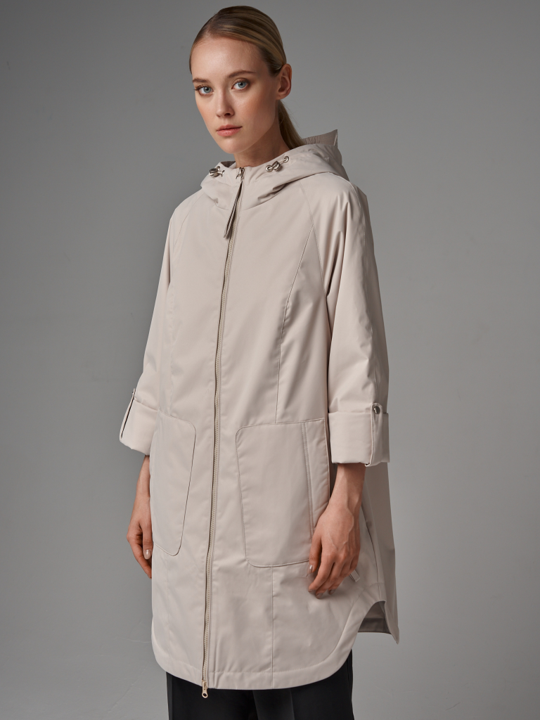Длина изделия по спинке: 88 см Длина рукава: 7/8 Плотность утеплителя: 60 г/м2 Температурный режим: от +13°C до +20°C Покрой: А-силуэт Тип рукава: реглан Тип карманов: настрочной карман Состав: 100% полиэстер Материал подкладки: 100% полиэстр Ткань: с водоотталкивающей пропиткой. Размеры: 42-56 Детали: застежка на молнию в цвет изделия.