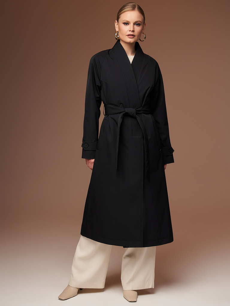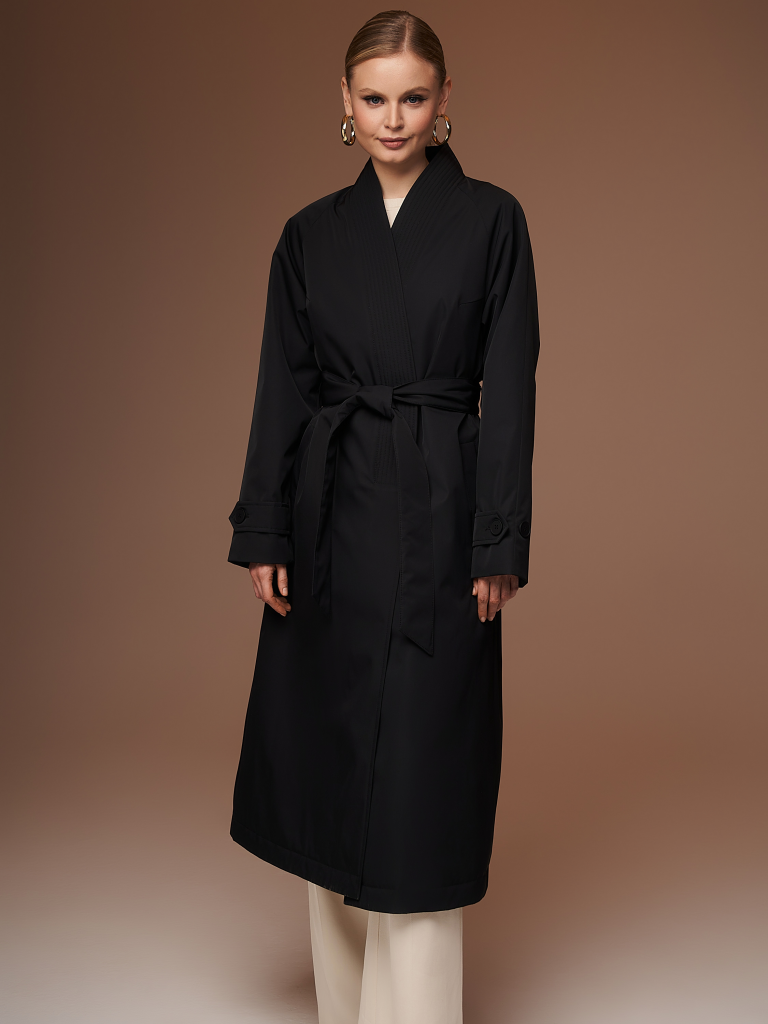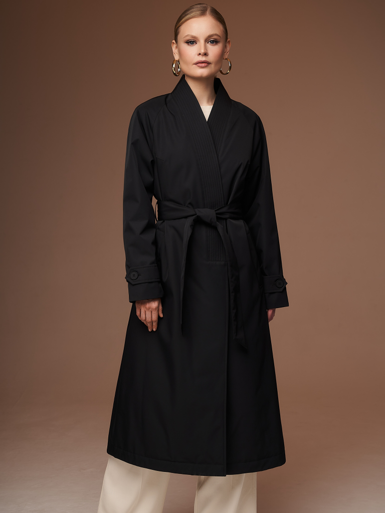 Коллекция: весна Длина изделия по спинке: 120 см Длина рукава: 65 см Плотность утеплителя: 60 г/м2 Температурный режим: от +13°C до +20°C Покрой: прямой Тип рукава: реглан. Тип карманов: Листочки на потайных кнопках Состав: 100% полиэстер Материал подкладки: 100% полиэстр Размеры: 42-48 Детали: внутренняя завязка. В комплекте пояс из основной ткани Ткань с водоотталкивающей пропиткой и с мембраной