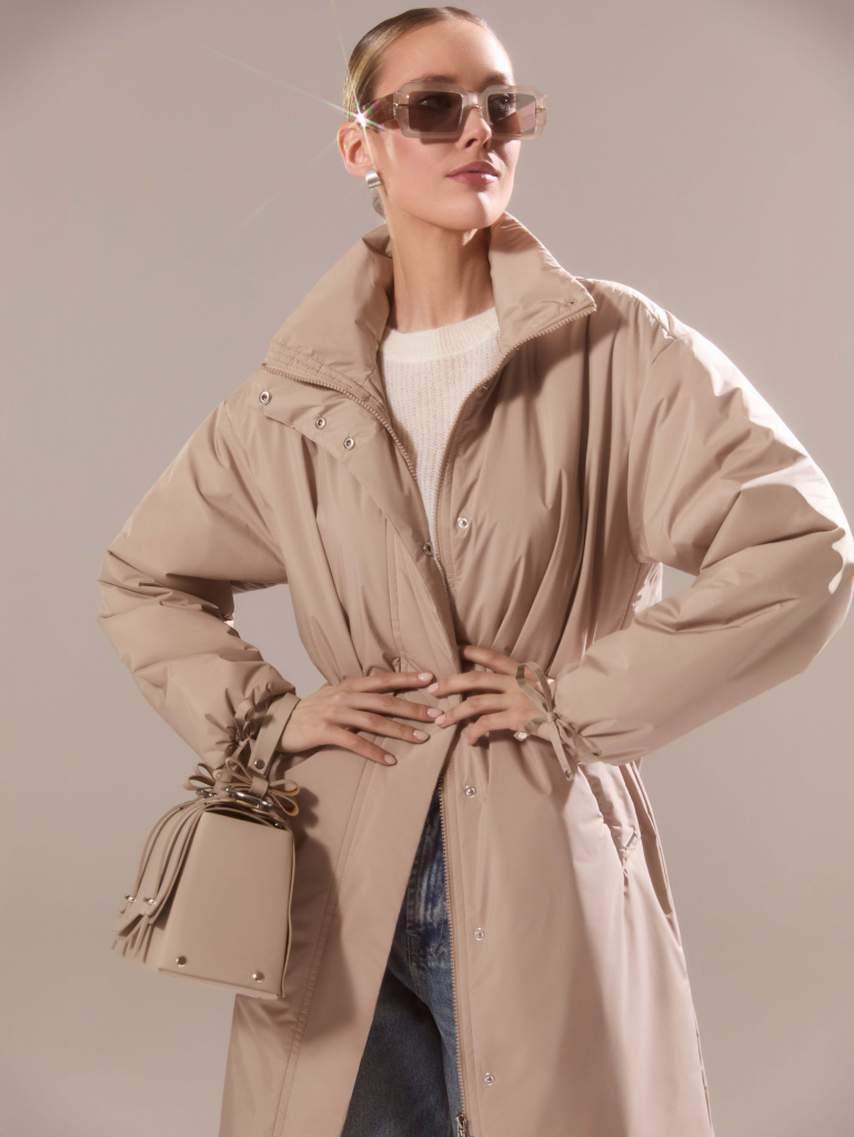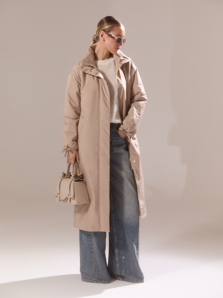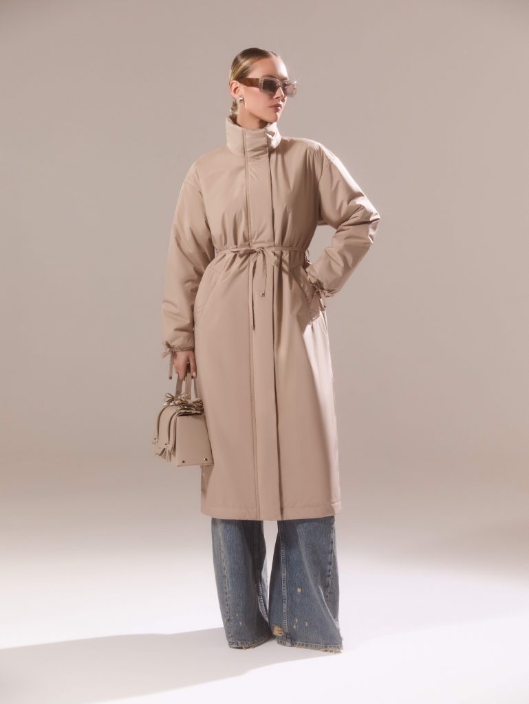 Длина изделия по спинке: 120 см Длина рукава: 65 см Плотность утеплителя: 60 г/м2 Утеплитель: изософт (высокотехнологичный рулонный утеплитель из микроволокна) Температурный режим: от +15°C до +20°C Покрой: прямой Тип рукава: втачной. спущенное плечо. Тип карманов: листочки на потайных кнопках Состав: 100% полиэстер Материал подкладки: 100% полиэстер Размеры: 42-56 Детали: застежка на молнию в цвет изделия и потайные кнопки. В комплекте тонкий пояс из основной ткани. Ткань с водоотталкивающей пропиткой