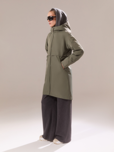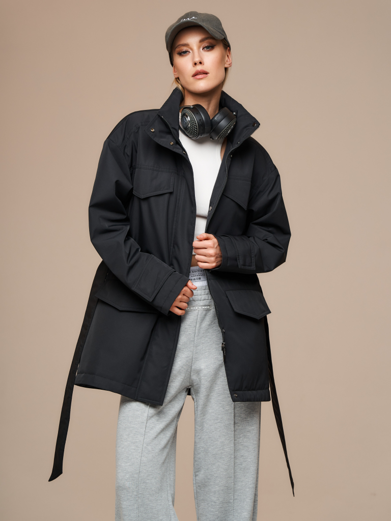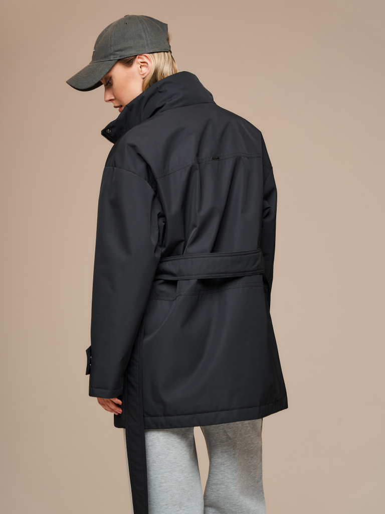 Детали: застежкака на молнию и потайные кнопки, декоративные паты, в комплекте пояс из основной ткани