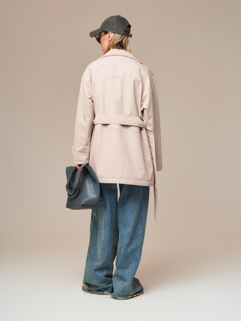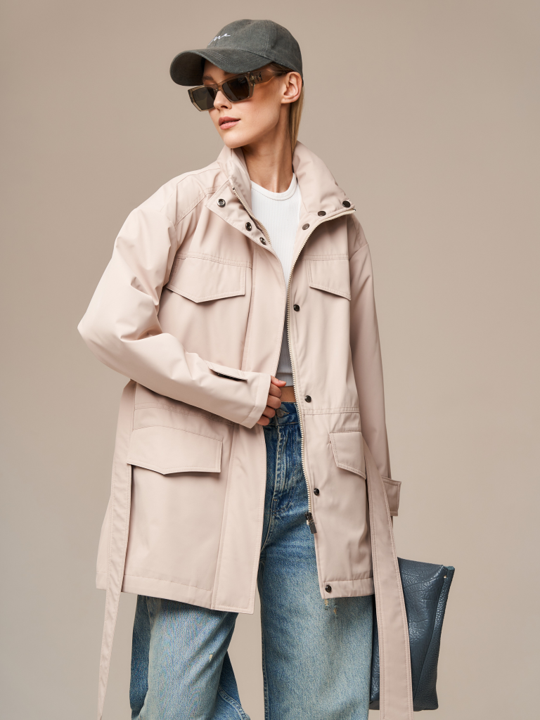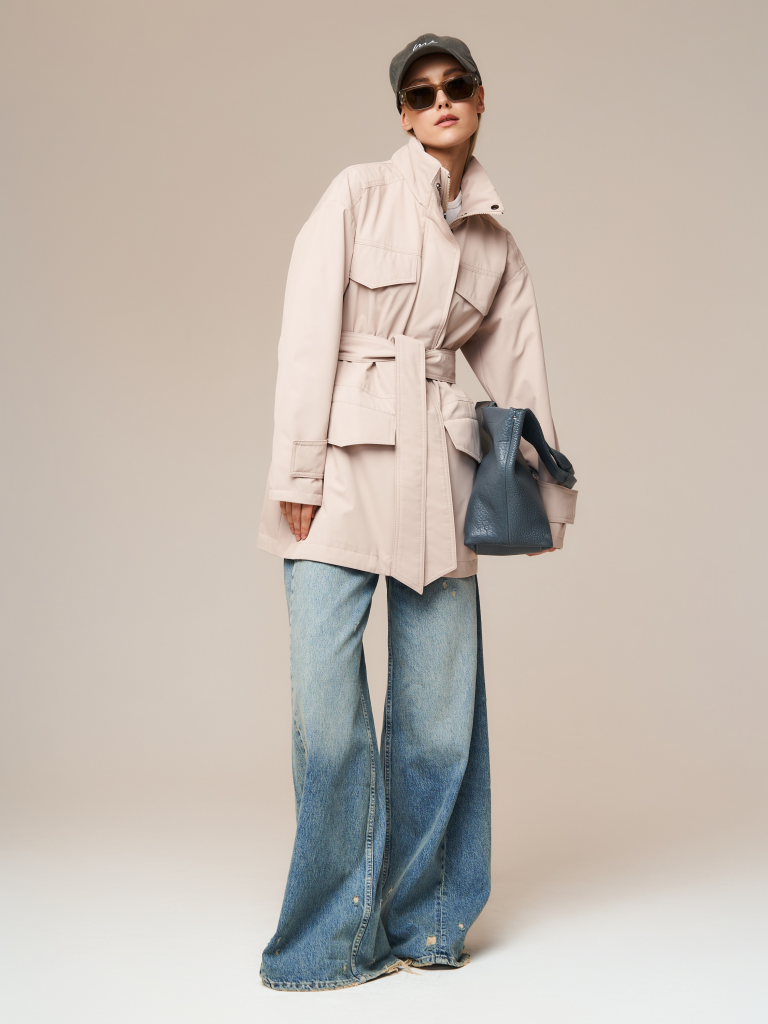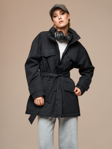 Детали: застежкака на молнию и потайные кнопки, декоративные паты, в комплекте пояс из основной ткани
