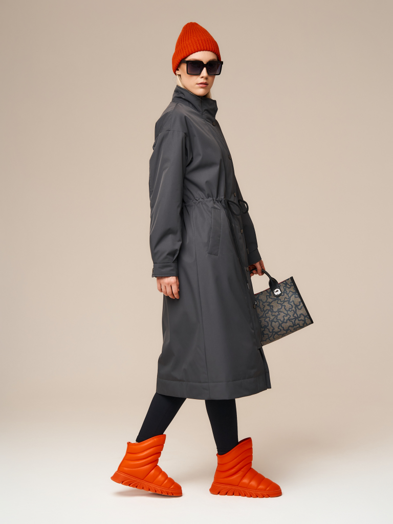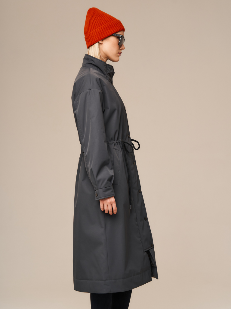 Длина изделия по спинке: 115 см Длина рукава: 66 см Утеплитель: изософт (высокотехнологичный, рулонный утеплитель из микроволокна) Плотность утеплителя: 60 г/м2 Температурный режим: от+15°С до +20°С Покрой: прямой Тип рукава: спущенное плечо Тип карманов: листочки на потайных кнопках Состав: 100% полиэстер Материал подкладки: 100% полиэстер Размеры: 42-56 Ткань с мембраной и водоотталкивающей пропиткой Детали: застежкакана молниюикнопки, в изделии есть утяжка на шнур на уровне талии.
