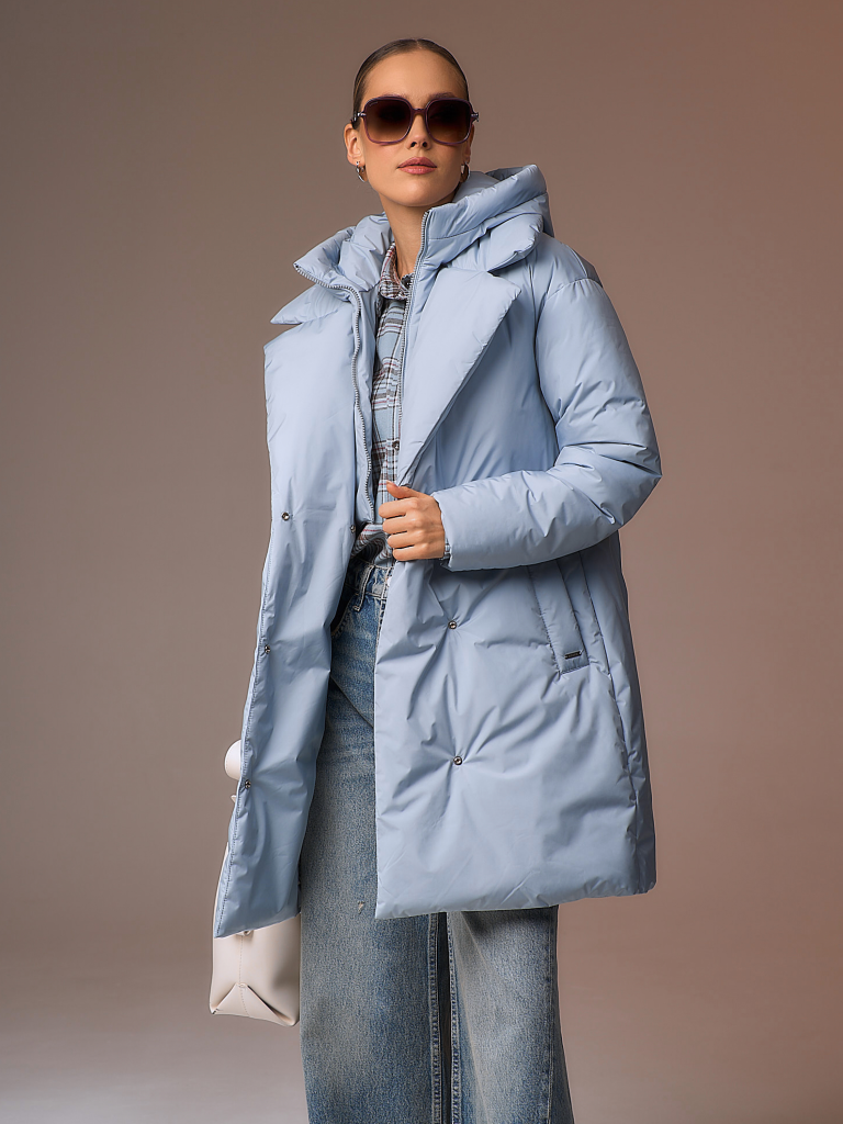7215 р. 14610 р. Пуховик женский серо-голубой