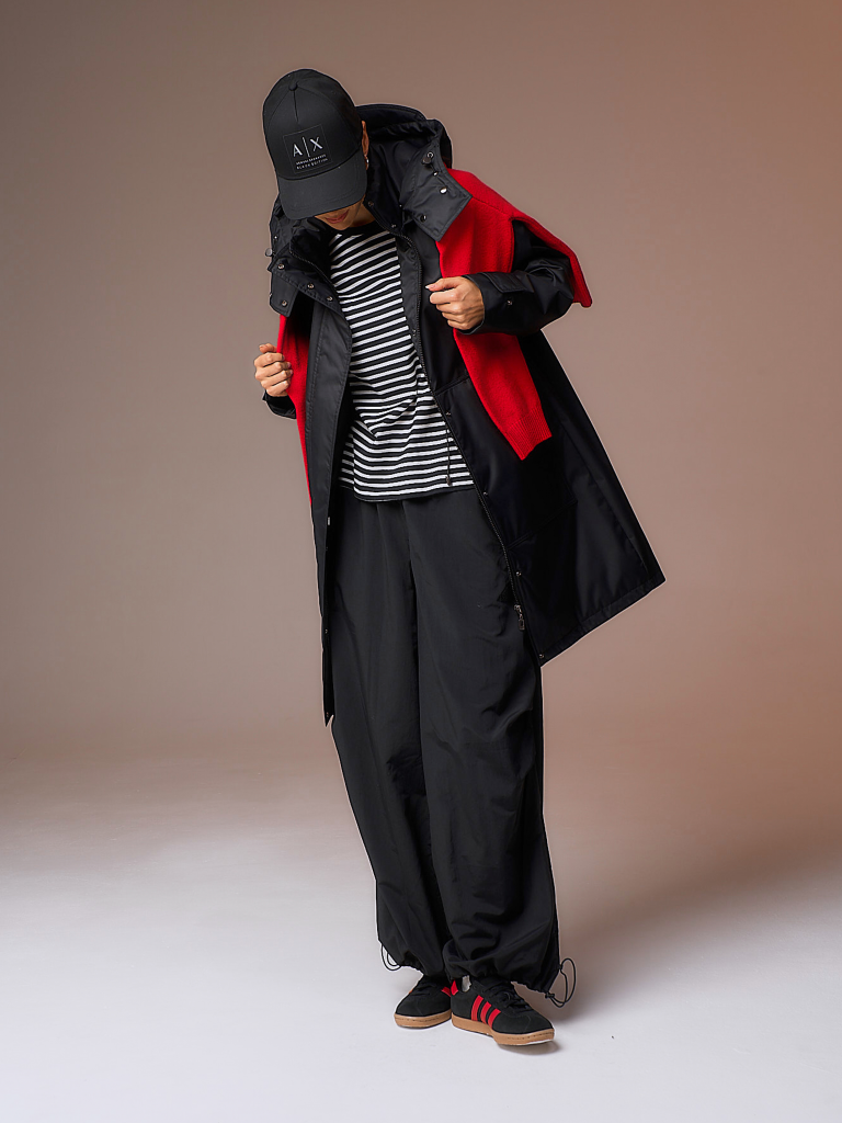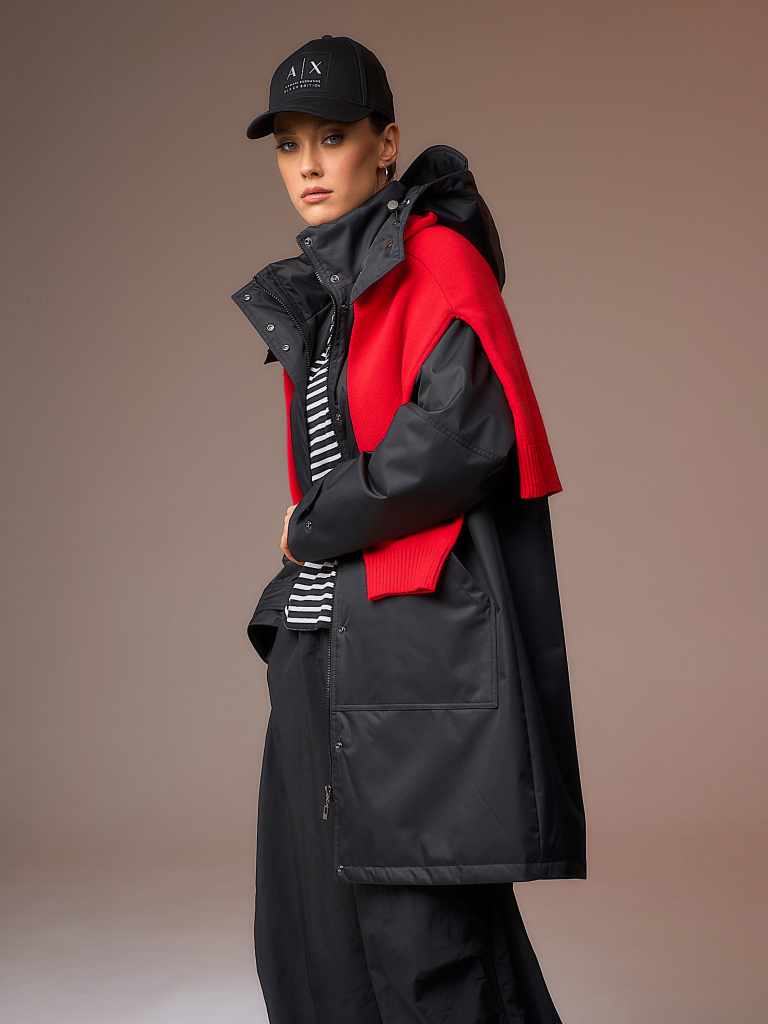 Декор: утяжка по талии с выходом на подборт, паты на рукавах.