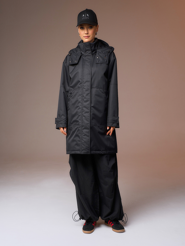 Карманы: настрочные, действующие Рукав 65 см с возсожностью утянуть. Капюшон отстежной