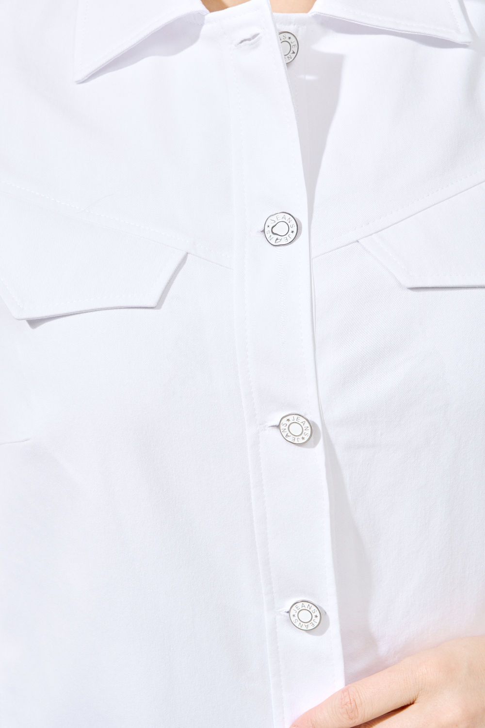 Стильная джинсовая куртка идеально сочетает классический дизайн и современную элегантность. Куртка свободного силуэта выполнена из хлопкового джинса с клапанами-обманками по верху и функциональными карманами в боковых швах, рукава со спущенной линией плеча и манжетами, застежка по переду на джинсовые пуговицы-болты.