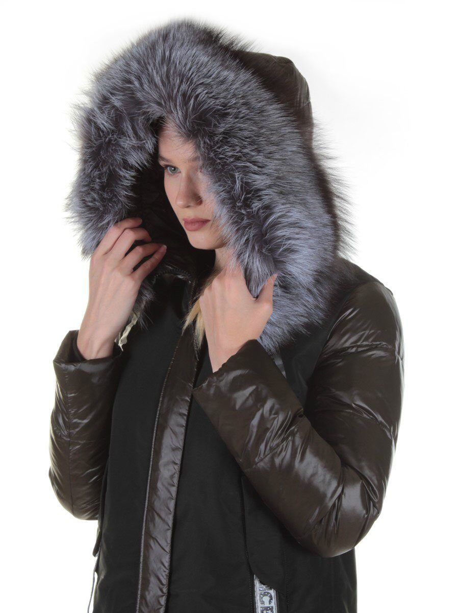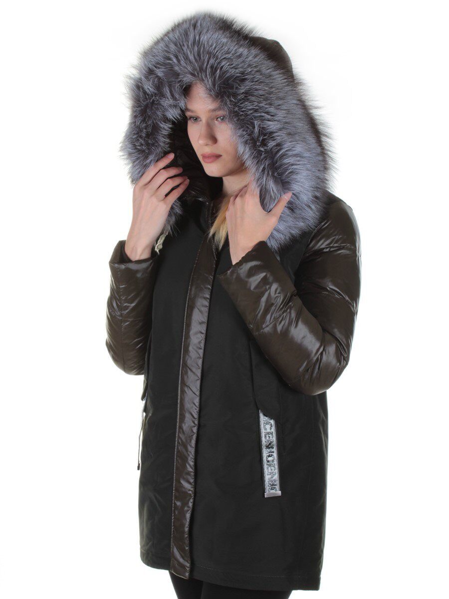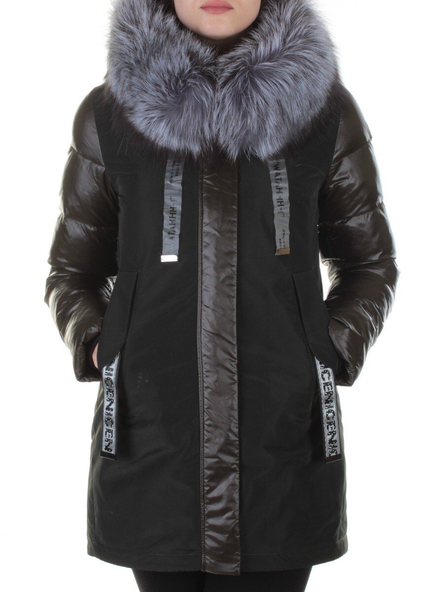 Пальто зимнее с мехом (холлофайбер, натуральный мех чернобурки)