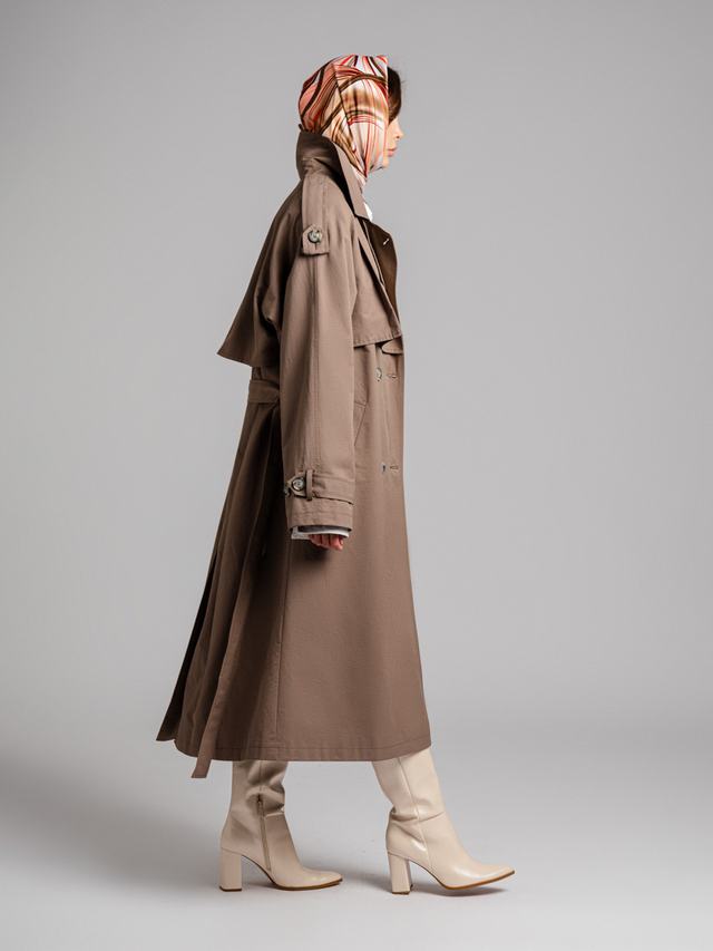 Длина 120 см, оверсайз силуэт и необычная кокетка — детали, которые наполнят силой и позволят свернуть горы. Пропитка от влаги подарит возможность добиться карьерных успехов даже под дождем.