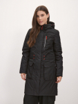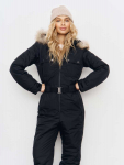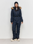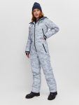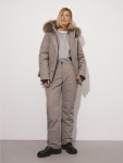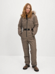 Женский зимний комбинезон из мембранной ткани с отрезным поясом по талии, пояс регулируется патами на липучке. Центральная застежка на молнию с влагозащитным покрытием. Втачной капюшон с кулисами по лицевой и затылочной части. 4 кармана на молниях с влагозащитной обработкой. 1 карман на рукаве с молнией. Низ рукава с патами на липучке и с внутренним манжетом, манжет с отверстием для большого пальца. Низ брюк с усилением и с внутренней снегозащитной муфтой. Комбинированная подкладка из флиса и шелка с внутренним карманом. Внутри комбинезона помочи из резинки для удобства ношения. На комбинезоне расположены светоотражающие элементы. Рассчитана на температуру от 0 до -20.