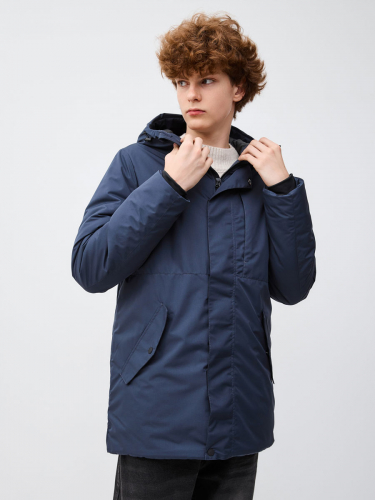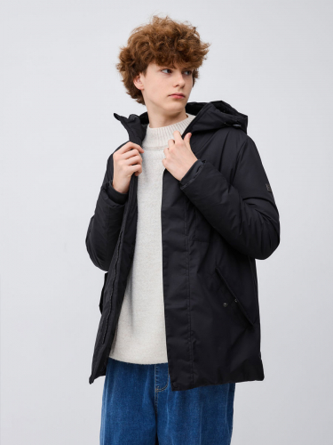 Демисезонная куртка для подростков, прямого силуэта, с втачным капюшоном. Центральная молния закрыта планкой на липучках и кнопках. 2 нижних кармана с клапаном на кнопке, 1 верхний карман с молнией. 1 внутренний карман с молнией. По низу куртки кулиса с резиновым шнуром и фиксаторами для регулировки. Низ рукавов и низ куртки не отстрачиваются. Рукав с внутренним манжетом.