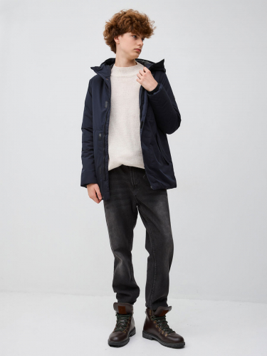 Демисезонная куртка для подростков, прямого силуэта, с втачным капюшоном. Центральная молния закрыта планкой на липучках и кнопках. 2 нижних кармана с клапаном на кнопке, 1 верхний карман с молнией. 1 внутренний карман с молнией. По низу куртки кулиса с резиновым шнуром и фиксаторами для регулировки. Низ рукавов и низ куртки не отстрачиваются. Рукав с внутренним манжетом.