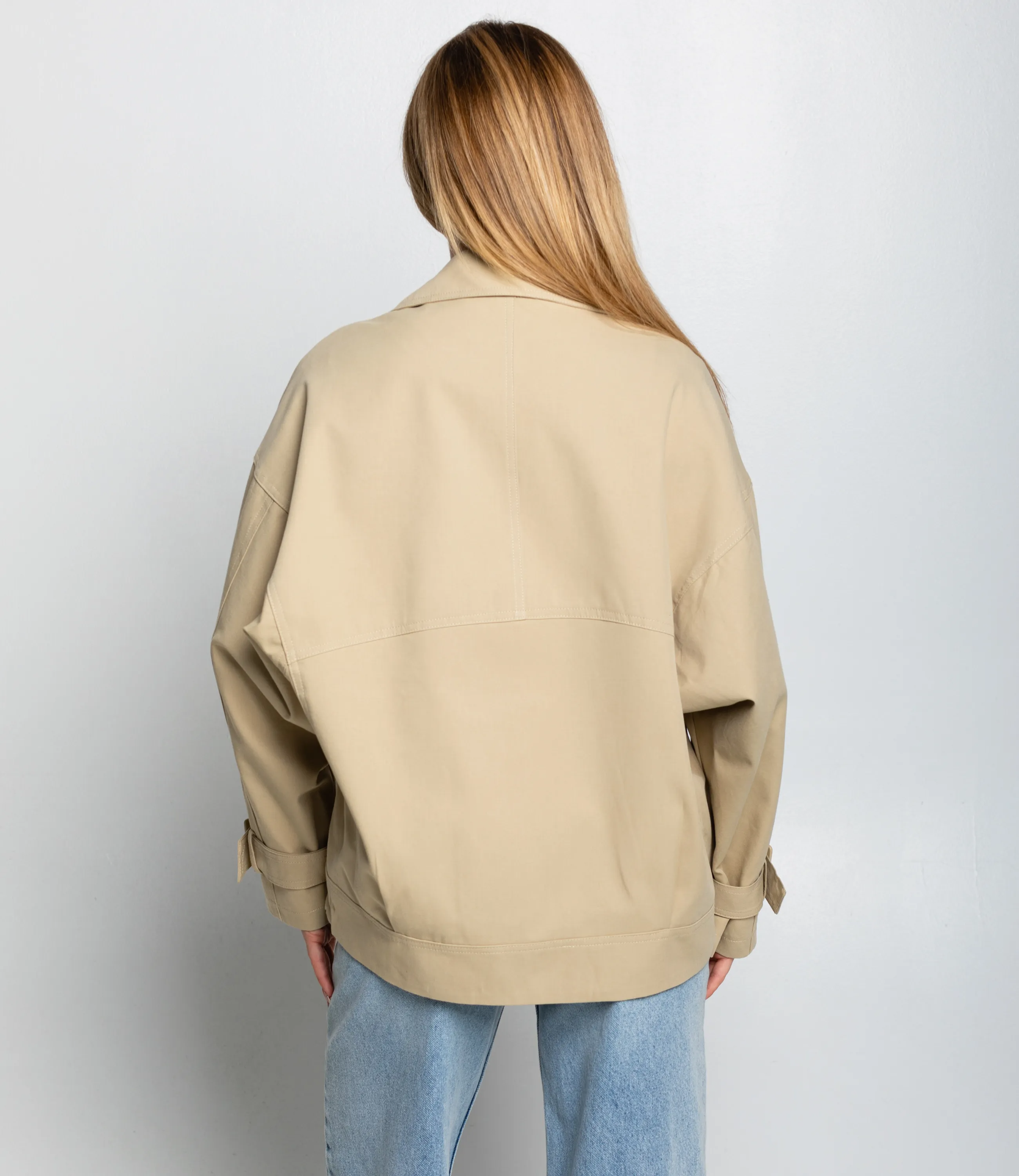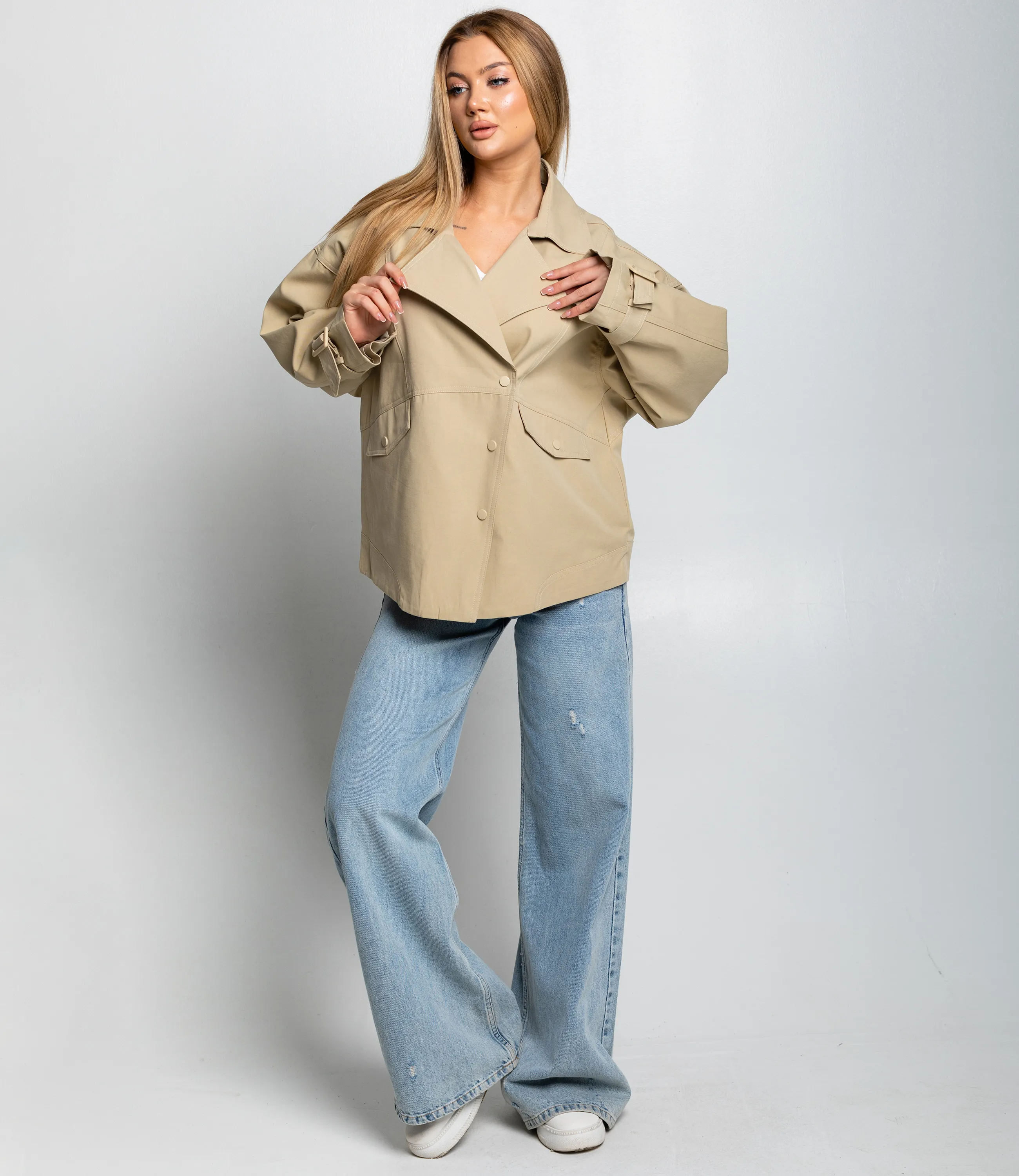 Куртка — это часть гардероба, которая подчёркивает привлекательность и индивидуальность каждой покупательницы. Свободная слегка укороченная куртка прямого силуэта с лёгким оверсайз‑эффектом, оснащённая классическим отложным воротником с широкими лацканами, образующим V‑образный вырез при застёгивании; фронтальная двойная застёжка на матовые кнопки, расположенные по центру; длинные спущенные рукава с объёмом в плечевой части и манжетами, на которых есть декоративные ремешки с пряжками для регулировки объёма; две накладные карман‑лапки с клапанами на уровне бёдер, каждый застёгивается на кнопку. Для пошива использованы 80% хлопка и 20% полиэстера, сочетание натурального комфорта и синтетической надёжности. Хлопок обеспечивает приятные тактильные ощущения и хорошую воздухопроницаемость, полиэстер придаёт прочность, устойчивость к смятию и выцветанию, облегчает уход и увеличивает стойкость изделия при частых стирках. Рекомендуем позиционировать куртку как ключевой элемент капсулы smart casual, сочетая её с брюками высокой посадки, юбками‑карандаш или худи. Визуально подчёркивайте контраст текстур рукавов в витрине и онлайн‑карточке, предлагайте несколько базовых оттенков и одну‑две акцентные версии для увеличения оборачиваемости. Вы можете заказать онлайн презентацию на интересующие Вас модели. Наши менеджеры свяжутся с Вами и проведут индивидуальную видеотрансляцию, помогут составить заказ и ответят на Ваши вопросы.