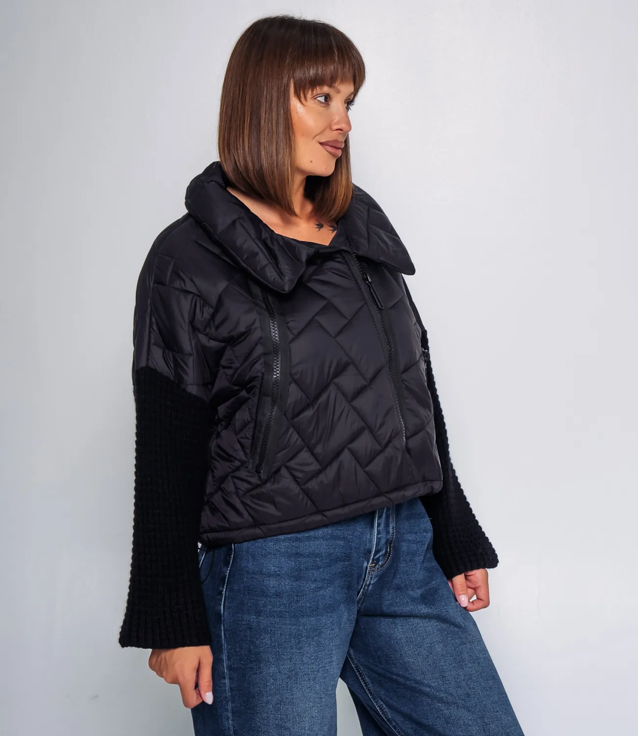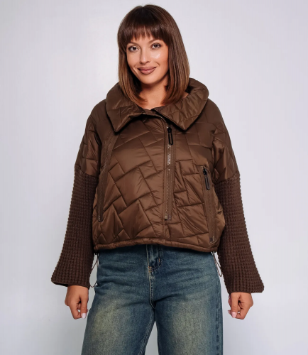 Куртка – это одежда, которая подчеркивает уникальность каждой представительницы прекрасного пола. Основная часть выполнена из стёганой ткани с крупным ромбовидным узором, который придает изделию объём и теплоизоляционные свойства. Рукава изготовлены из контрастного материала с фактурой в виде крупной вязки (в стиле «вафельной» или «соты»), что добавляет оригинальности и эстетического интереса модели. Куртка имеет асимметричную застежку на молнию, начинающуюся сверху у воротника и спускающуюся вниз, что добавляет модный акцент и позволяет регулировать степень закрытия. На передней части видны вертикальные карманы на молниях для удобства и практичности. Низ изделия слегка присборен резинкой, что помогает удерживать тепло и придает силуэту чуть свободную, но аккуратную форму. Для изготовления куртки использован 42% акрил, 30% полиэстер, 28% хлопок, который характеризуется отличным качеством. Даже после многократных стирок изделие не утратит первоначальной привлекательности. Вы будете носить его с радостью. Обратите внимание на цвет, который является насыщенным и полностью соответствует фотографии на сайте. Чтобы вы были уверены в размере, мы представили на странице таблицу. Воспользовавшись ею, вы сможете сами обмерить себя и удостовериться. Установленная нами цена является приемлемой. Не откажите себе в удовольствии быть неповторимой!