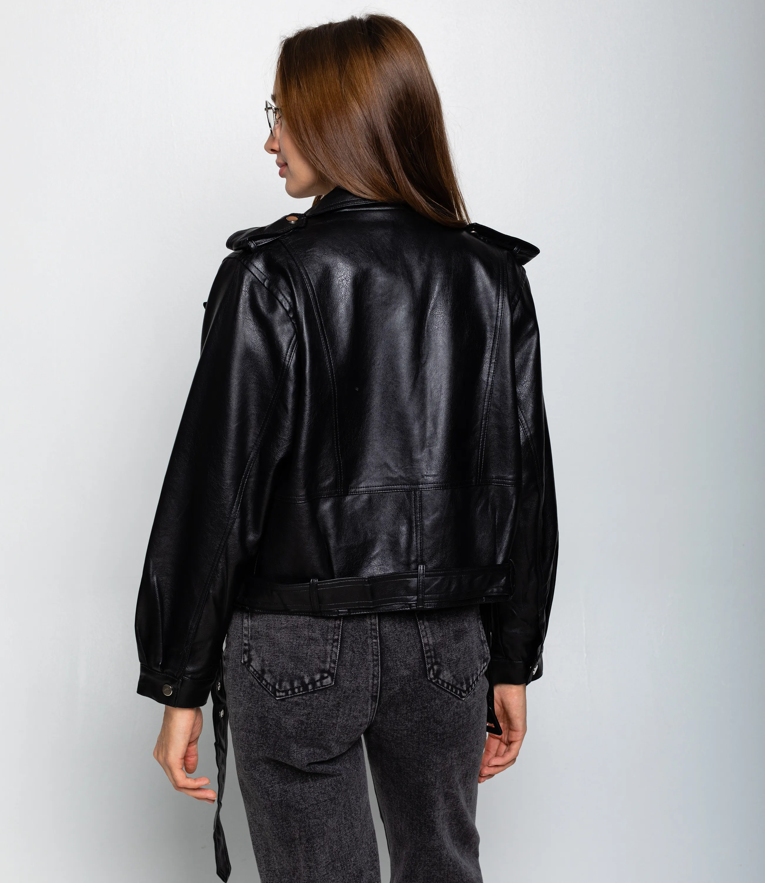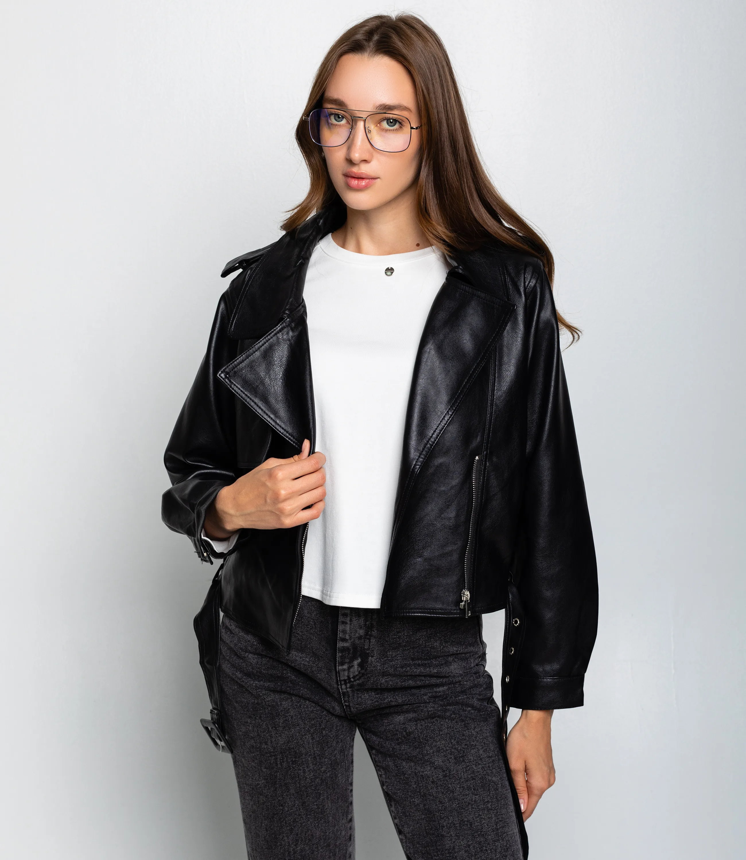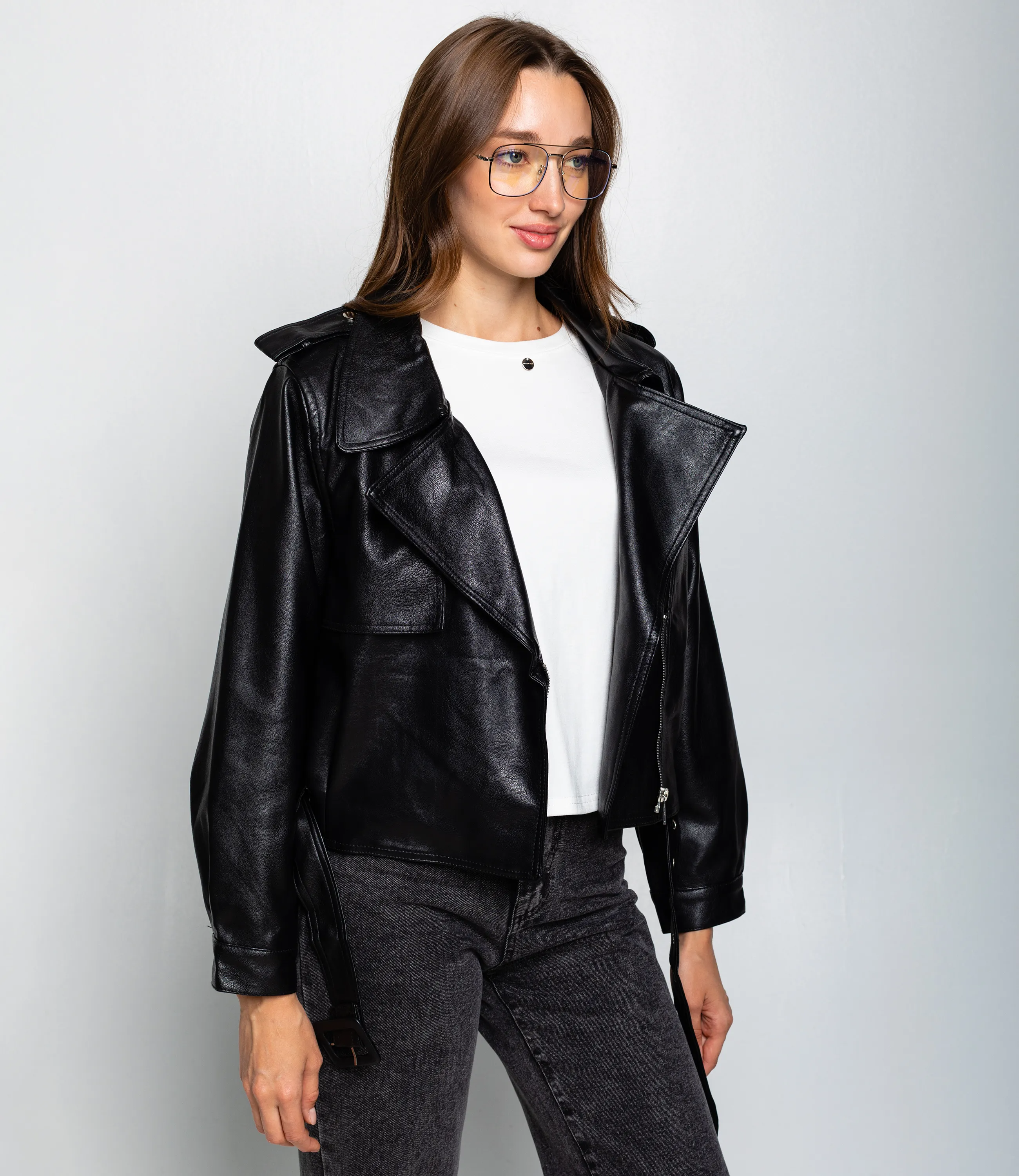 Укороченная модель куртки из экокожи. Экокожа не содержит ПВХ, она пропускает воздух в несколько раз лучше, чем натуральная кожа. Она не имеет запаха, морозоустойчива, имеет низкую теплопроводность. Рост 168 см, 85-63-92. Вы можете заказать онлайн презентацию на интересующие Вас модели. Наши менеджеры свяжутся с Вами и проведут индивидуальную видеотрансляцию, помогут составить заказ и ответят на Ваши вопросы.