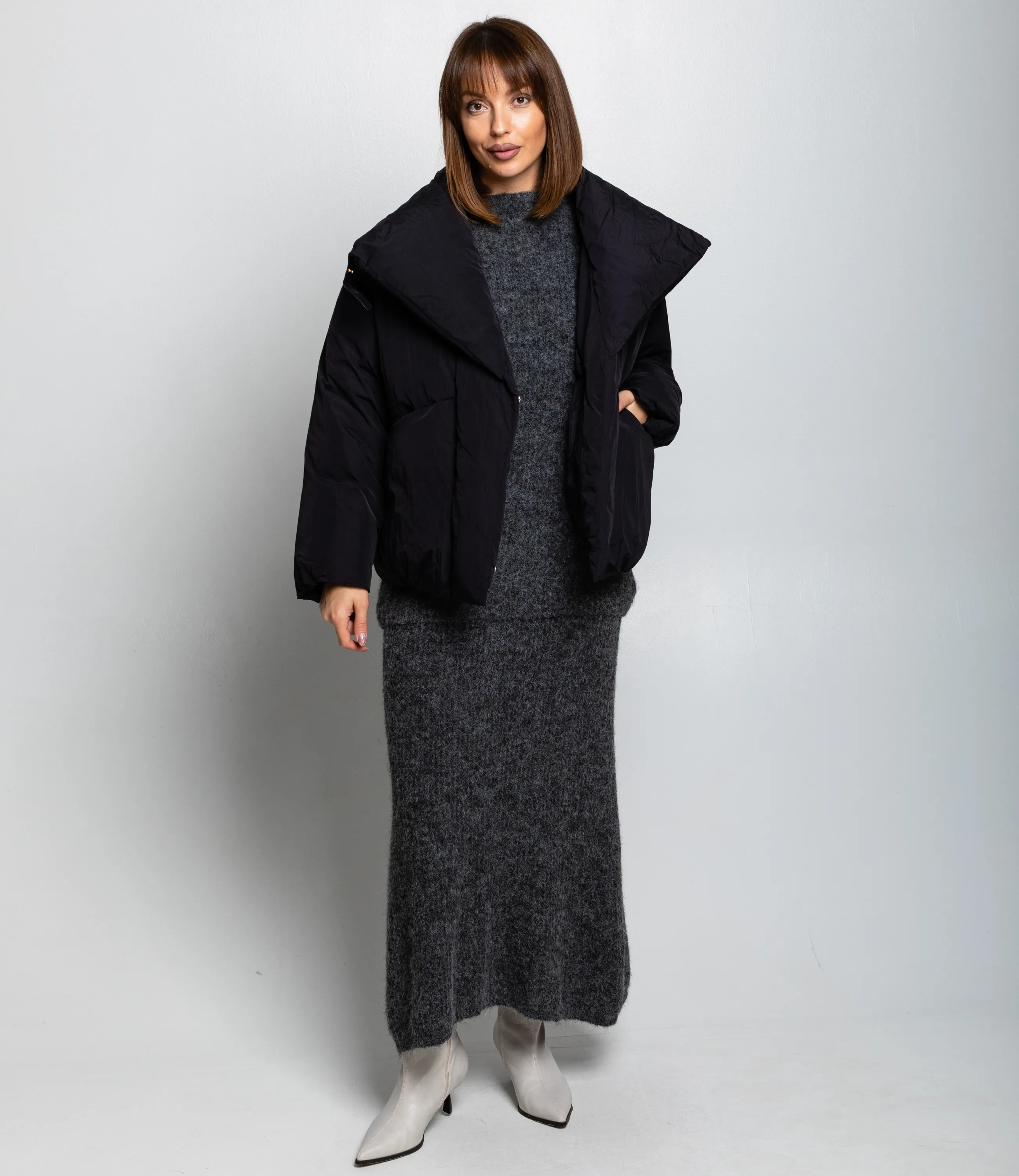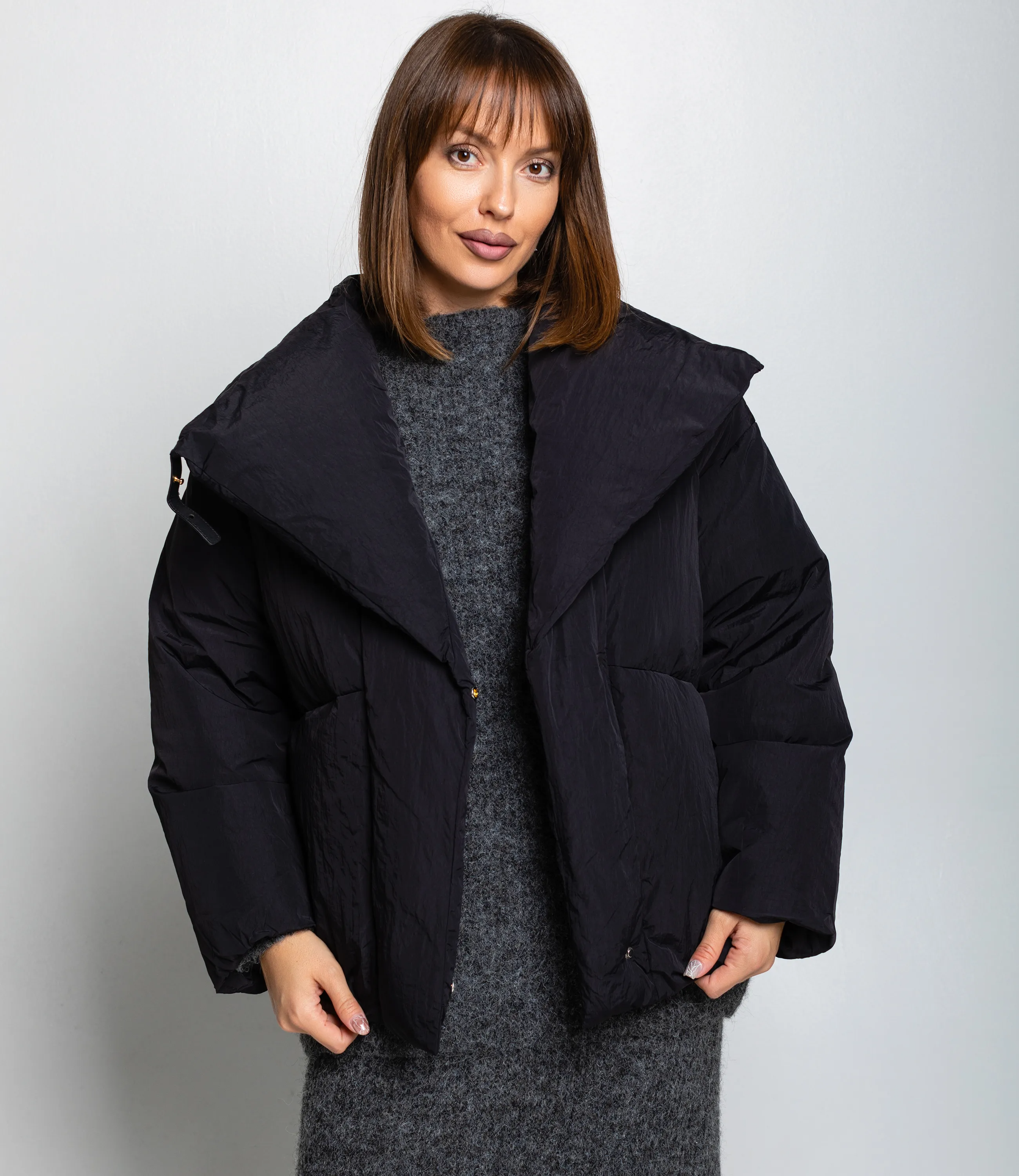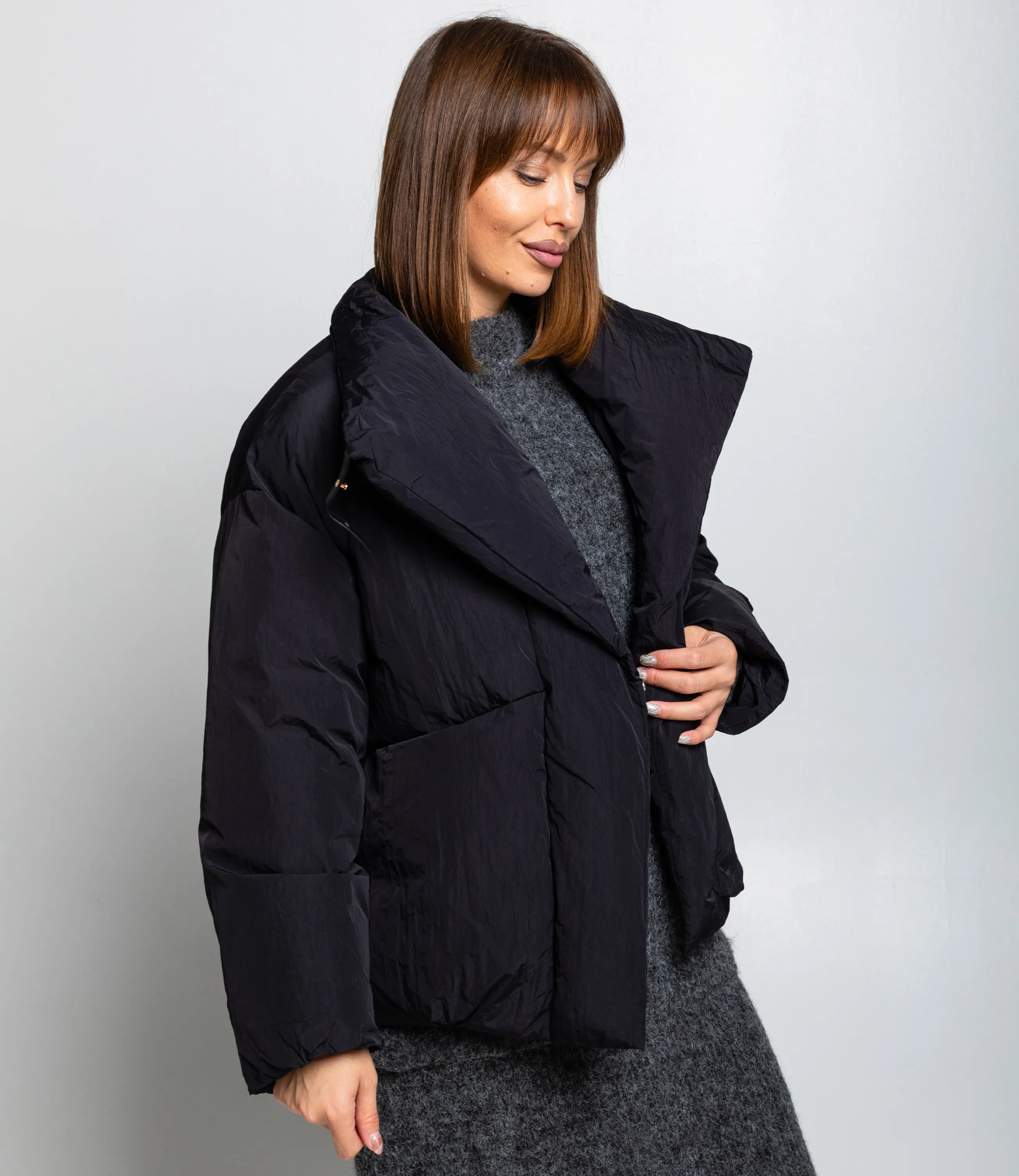 Куртка — это часть гардероба, которая подчёркивает привлекательность и индивидуальность каждой покупательницы. Куртка выполнена из плотной стёганой ткани с матовой текстурой, имеет свободный укороченный силуэт до бёдер и слегка оверсайзную посадку; воротник широкий, с выраженной воротниковой стойкой, которая плавно переходит в объёмный капюшоноподобный элемент с мягкой подпоркой, формирующей широкие отложенные борта; центральная застёжка сочетает скрытую молнию и декоративную пуговицу‑фиксатор у груди, обеспечивая плотное закрытие и защиту от ветра; рукава прямые, с лёгкой расширённостью и незаметными манжетами, швы рукавов формируют горизонтальные сегменты стёжки. Для пошива использованы 100% полиэстера, сочетание натурального комфорта и синтетической надёжности. Рекомендуем позиционировать куртку как ключевой элемент капсулы smart casual, сочетая её с брюками высокой посадки, юбками‑карандаш или худи. Визуально подчёркивайте контраст текстур рукавов в витрине и онлайн‑карточке, предлагайте несколько базовых оттенков и одну‑две акцентные версии для увеличения оборачиваемости. Вы можете заказать онлайн презентацию на интересующие Вас модели. Наши менеджеры свяжутся с Вами и проведут индивидуальную видеотрансляцию, помогут составить заказ и ответят на Ваши вопросы.
