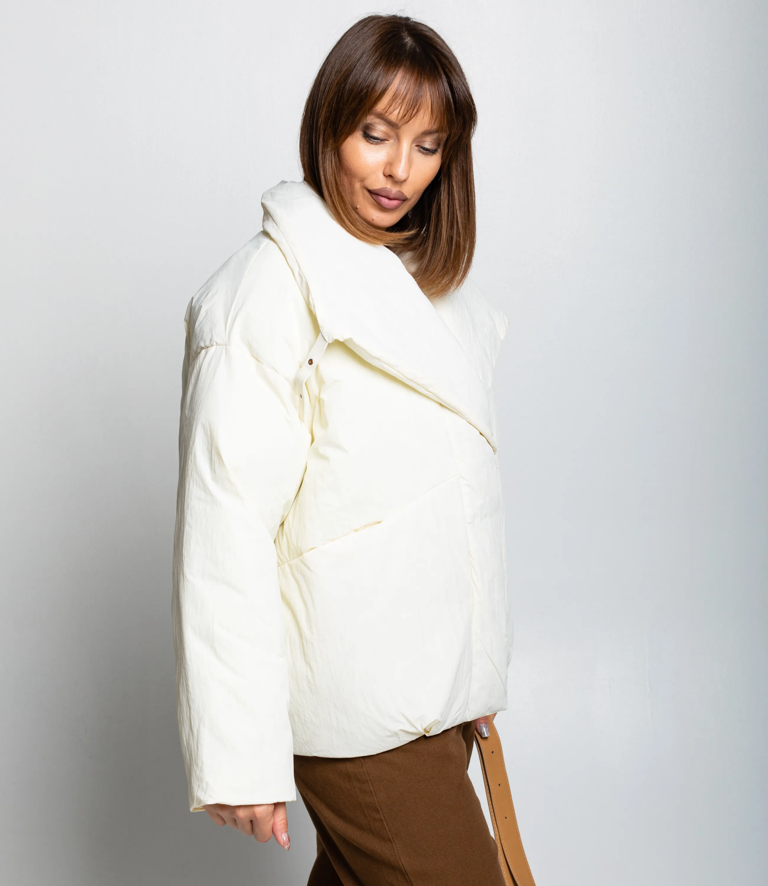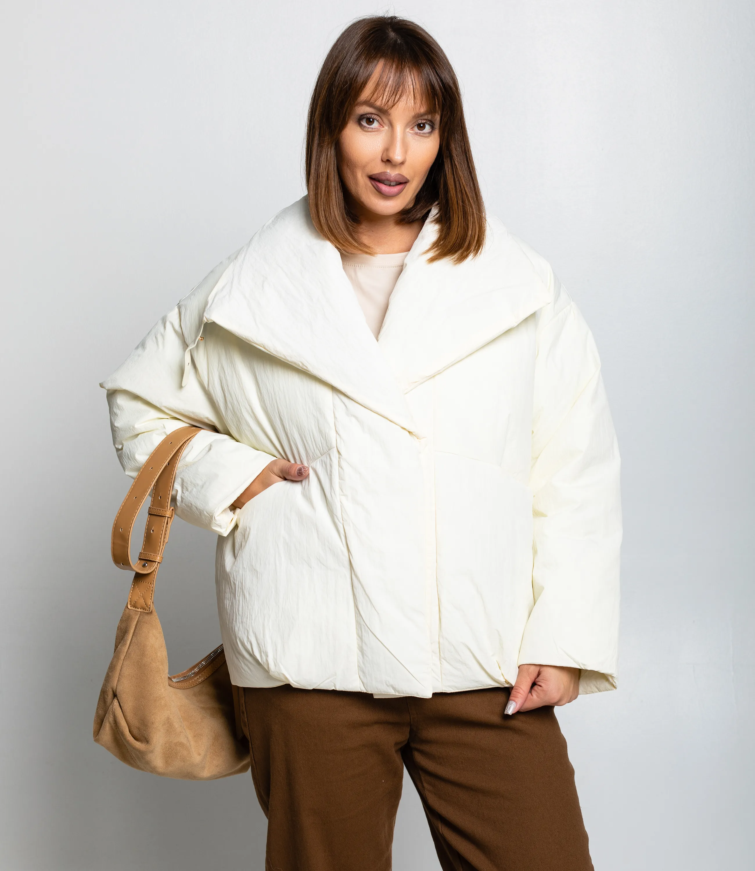 Куртка — это часть гардероба, которая подчёркивает привлекательность и индивидуальность каждой покупательницы. Куртка выполнена из плотной стёганой ткани с матовой текстурой, имеет свободный укороченный силуэт до бёдер и слегка оверсайзную посадку; воротник широкий, с выраженной воротниковой стойкой, которая плавно переходит в объёмный капюшоноподобный элемент с мягкой подпоркой, формирующей широкие отложенные борта; центральная застёжка сочетает скрытую молнию и декоративную пуговицу‑фиксатор у груди, обеспечивая плотное закрытие и защиту от ветра; рукава прямые, с лёгкой расширённостью и незаметными манжетами, швы рукавов формируют горизонтальные сегменты стёжки. Для пошива использованы 100% полиэстера, сочетание натурального комфорта и синтетической надёжности. Рекомендуем позиционировать куртку как ключевой элемент капсулы smart casual, сочетая её с брюками высокой посадки, юбками‑карандаш или худи. Визуально подчёркивайте контраст текстур рукавов в витрине и онлайн‑карточке, предлагайте несколько базовых оттенков и одну‑две акцентные версии для увеличения оборачиваемости. Вы можете заказать онлайн презентацию на интересующие Вас модели. Наши менеджеры свяжутся с Вами и проведут индивидуальную видеотрансляцию, помогут составить заказ и ответят на Ваши вопросы.