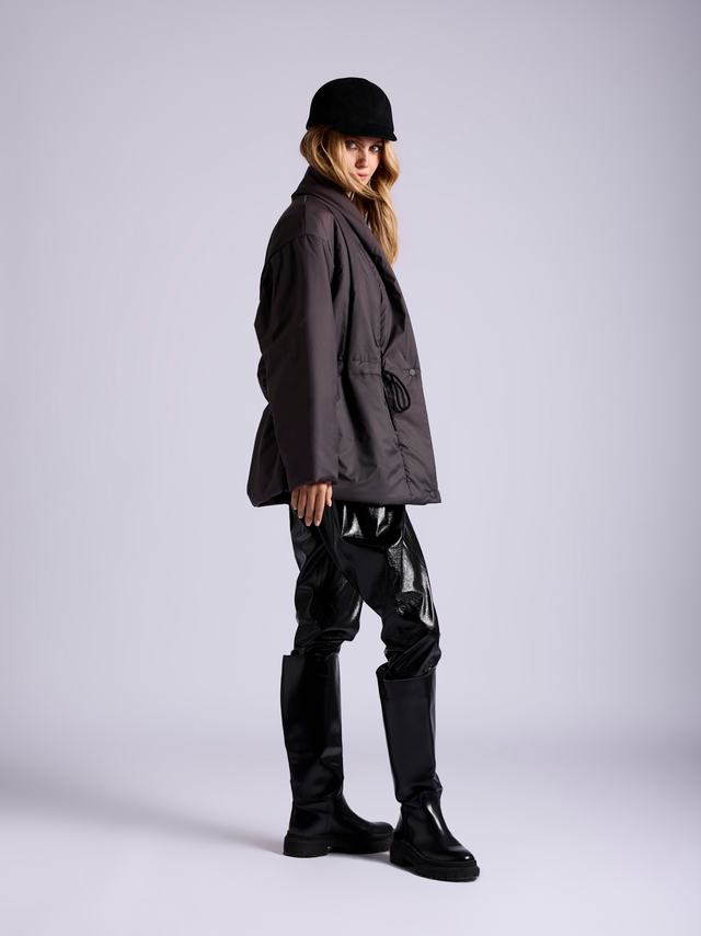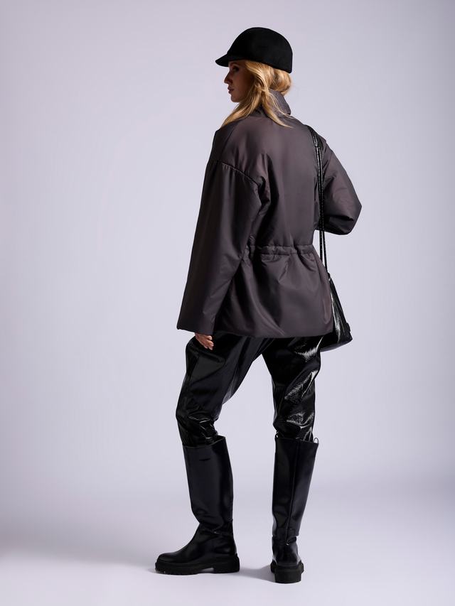 Сочетание утеплителя «изософт» и водооталкивающей пропитки позволяет строить планы несмотря на погоду. Благодаря спущенному плечу и оверсайз крою можно комфортно ность пиджаки и свитера. С помощью кулиски регулируйте силуэт от прямого до приталенного.